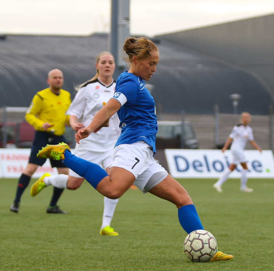 Fyrirliðinn, tekinn af velli og tekur Fanndís við bandinu.