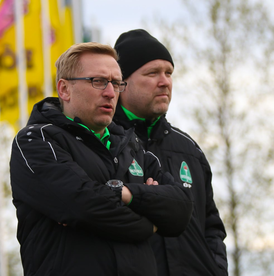 Jóhannes Karl fyrrum þjálfari Stjörnunnar er mættur í stúkuna að vanda, að horfa á markadrottinguna, Hörpu Þorsteinsdóttur, sem öllum að óvörum er búin að skora í kvöld.