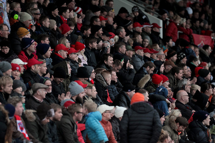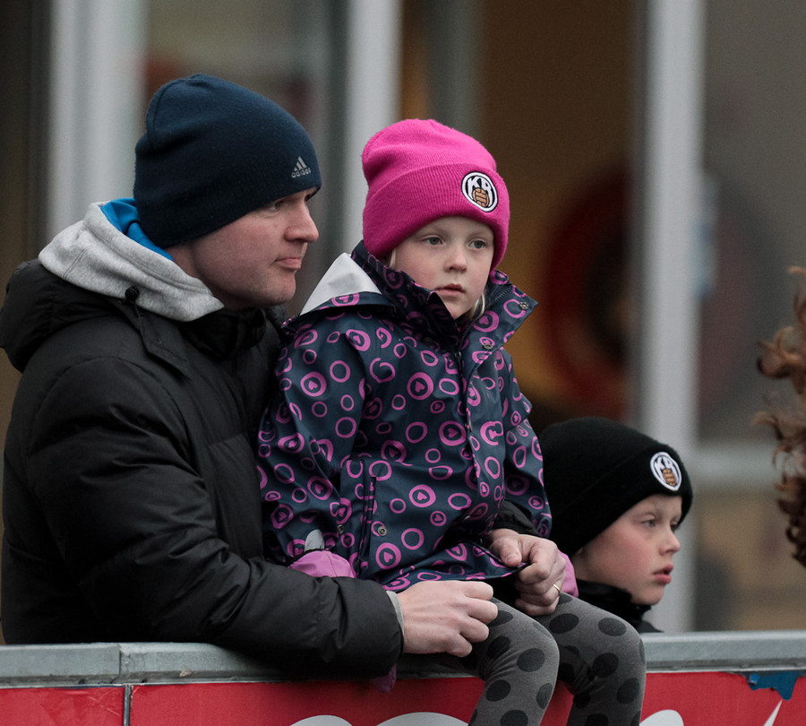 Annars eru áhorfendur byrjaðir að koma sér fyrir. Það er jafnan mjög vel mætt á þessa leiki og oftar en ekki uppselt. Stemningin á þessum leikjum er einfaldlega bara aðeins öðruvísi.