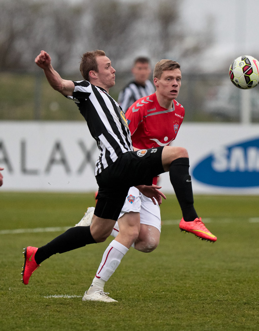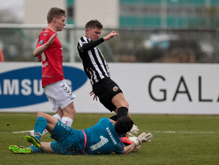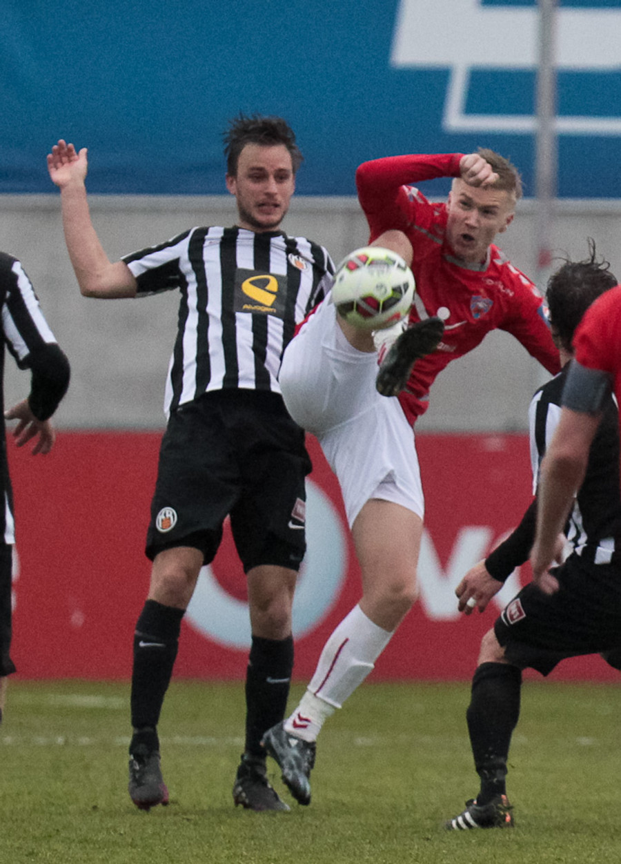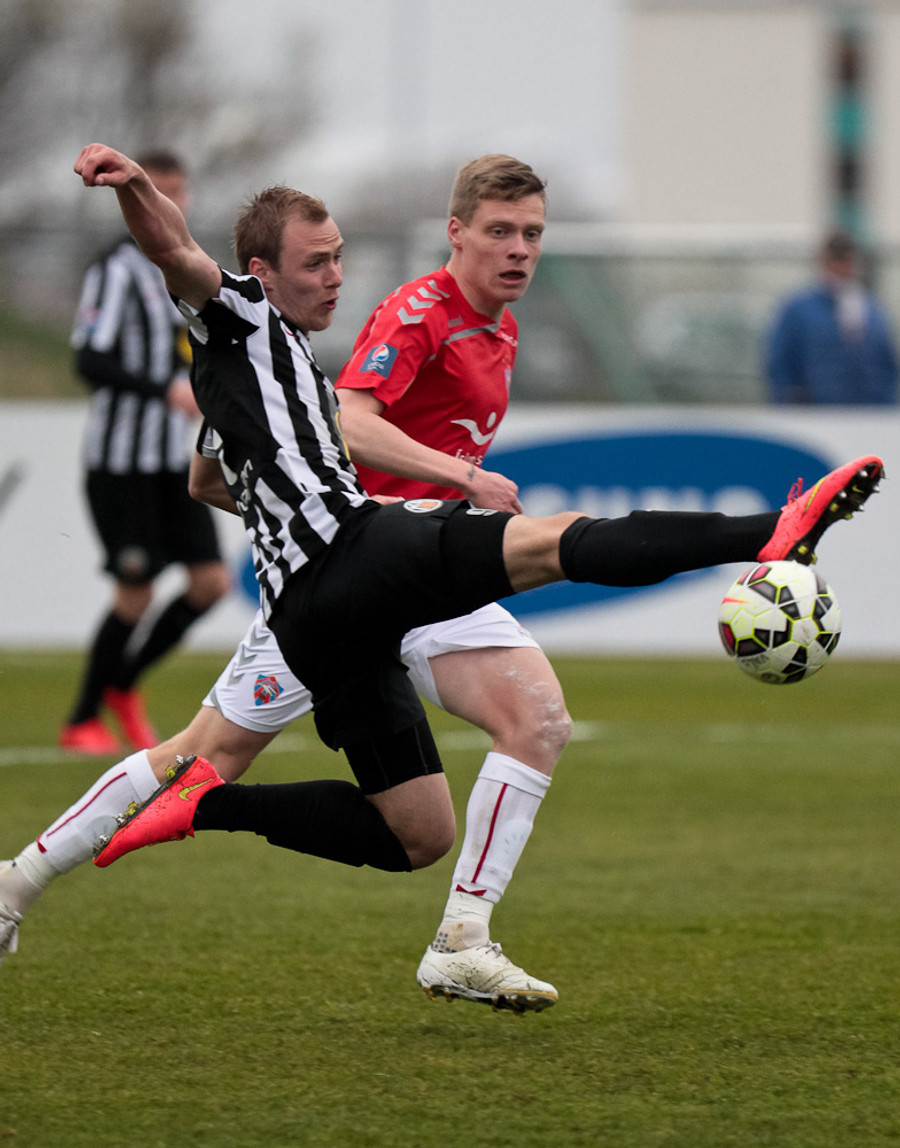 Svo mikið að gerast. Kristinn Ingi var kominn í mjög góða stöðu en Stefán Logi var rétt á undan honum í boltann og bjargaði því sem bjargað var.