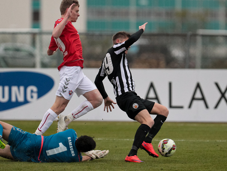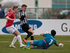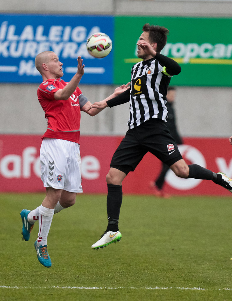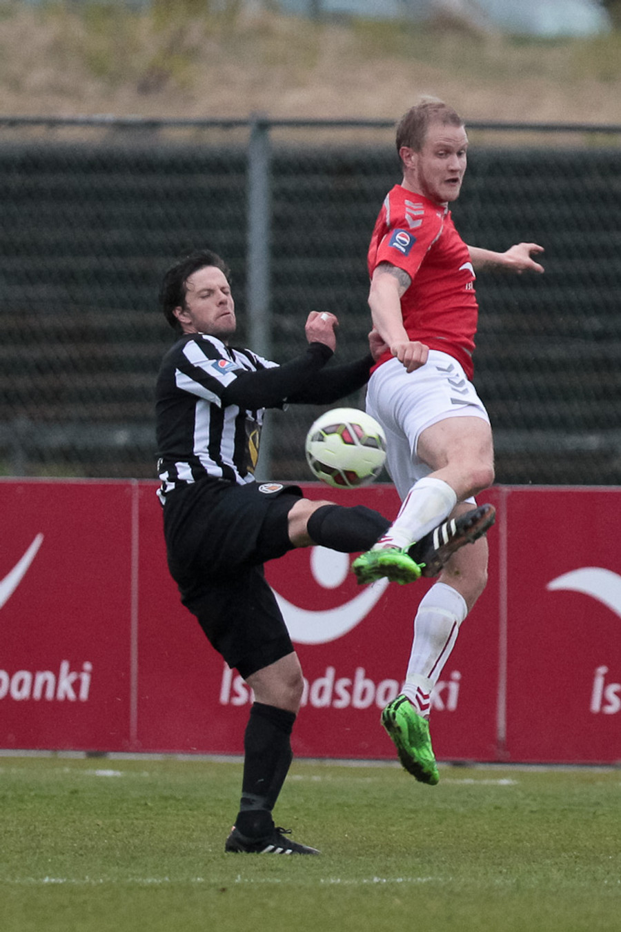 Svo mikið að gerast. Kristinn Ingi var kominn í mjög góða stöðu en Stefán Logi var rétt á undan honum í boltann og bjargaði því sem bjargað var.