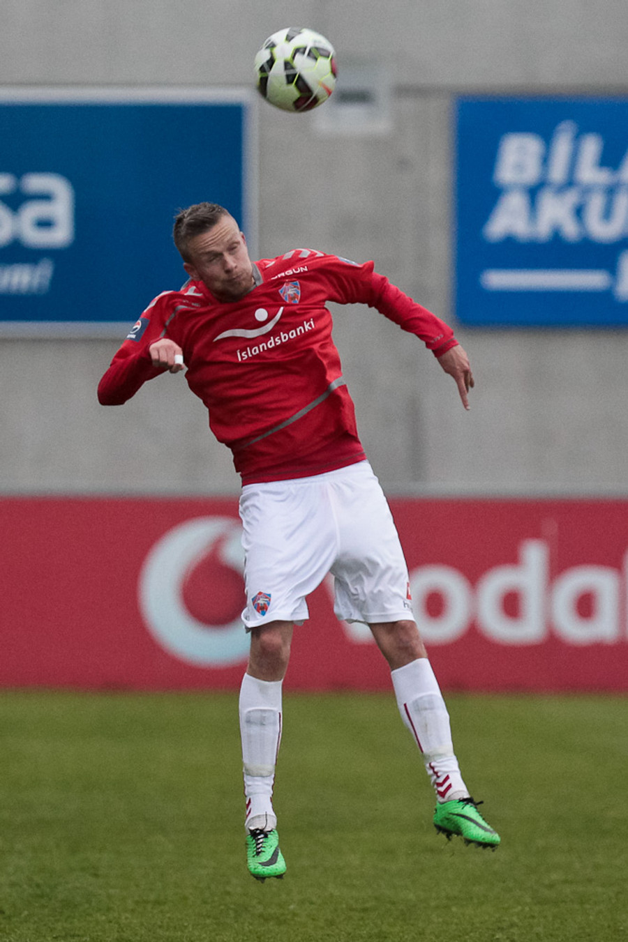 Óskar Örn með líklegast síðustu tilraun leiksins. Hann er í fínu skotfæri en skotið hans fer hátt, hátt yfir markið.