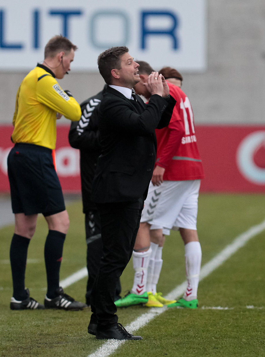 Bjarni Guðjóns svalur í æðiskasti á hliðarlínunni. Fór mas úr úlpunni og kastaði henni dramatískt frá sér. #fotboltinet