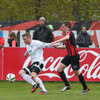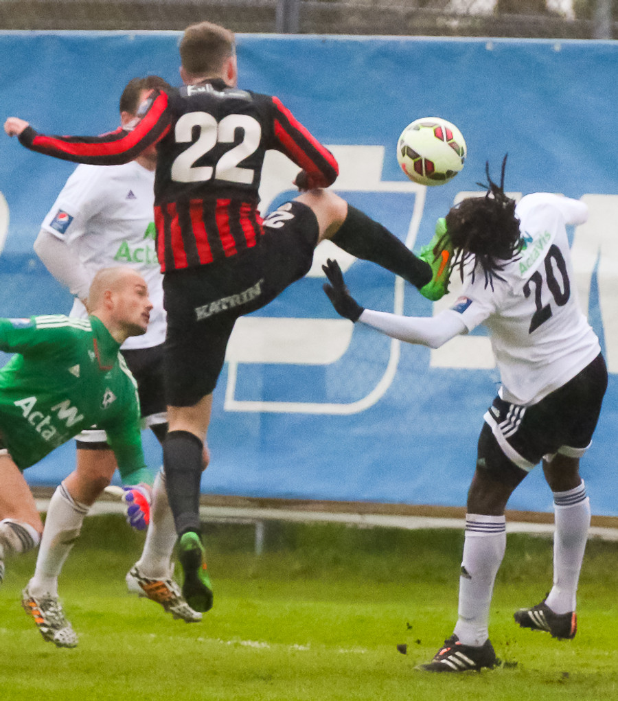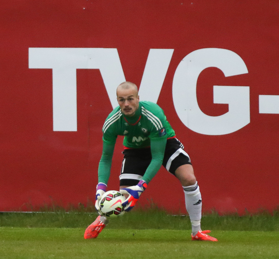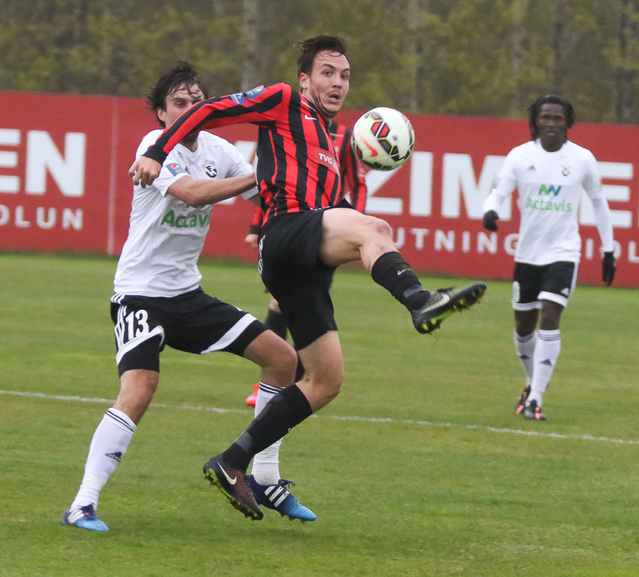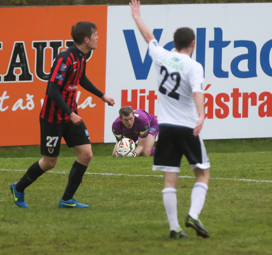 Tómas Guðmundsson með frábæra fyrirgjöf. Andri Rúnar gerði vel og kom bakvið varnarmanninn og stakk sér framfyrir hann og skallaði en því miður fyrir hann beint á Róbert.