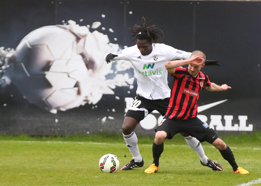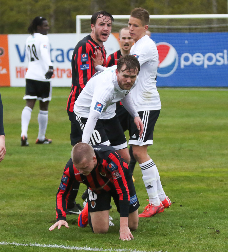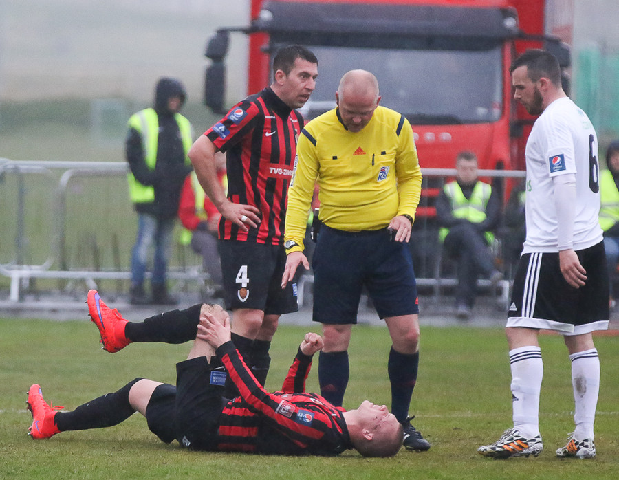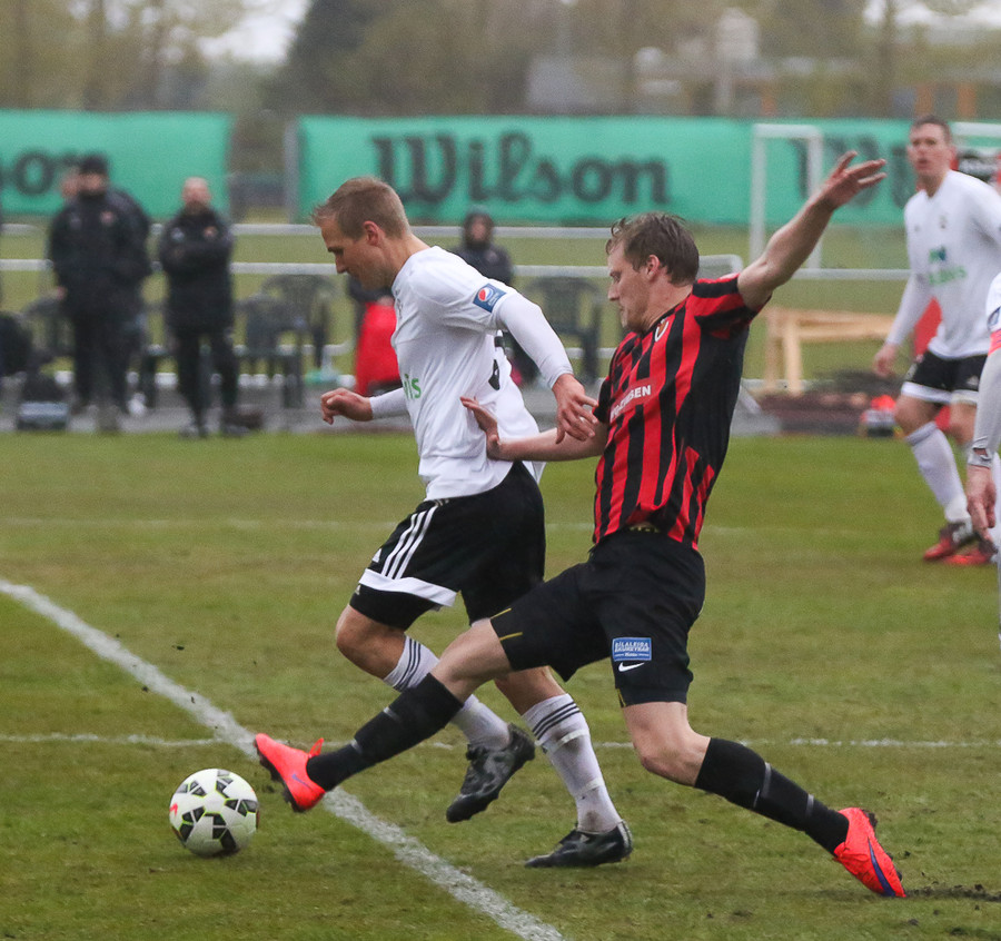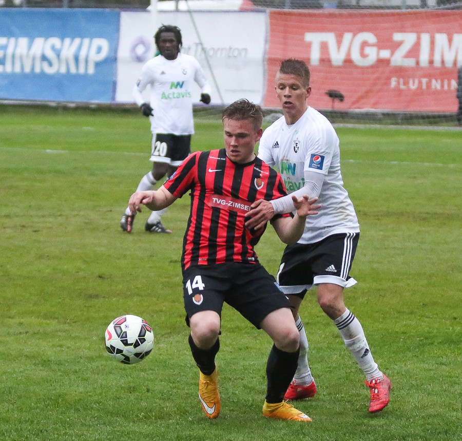 Davíð Þór fær gult fyrir ljótt brot. Hefði mögulega getað verið rautt frá mínu sjónarhorni