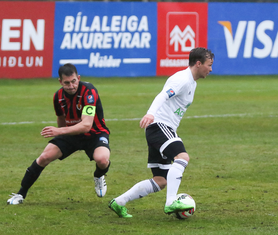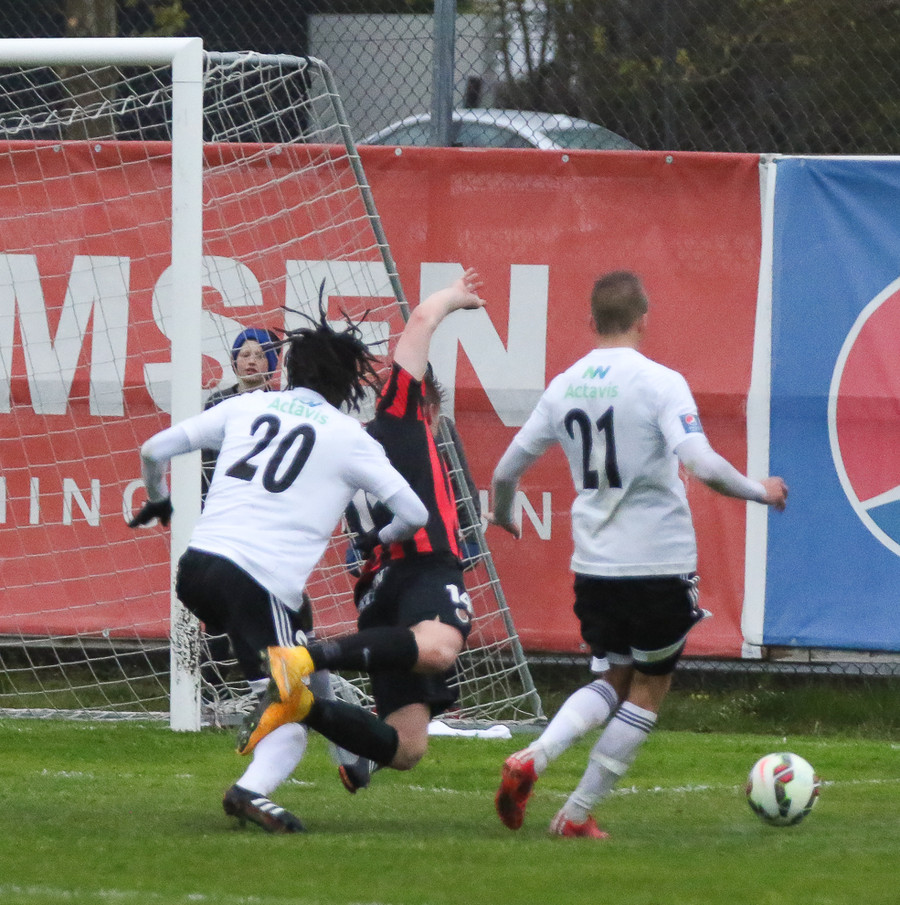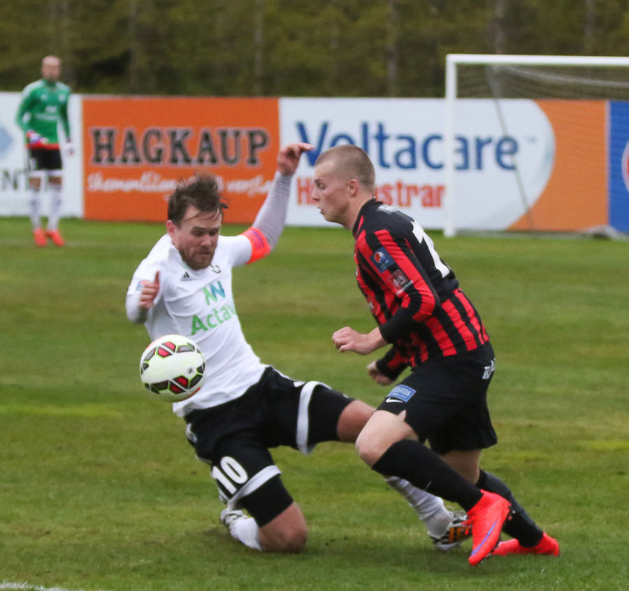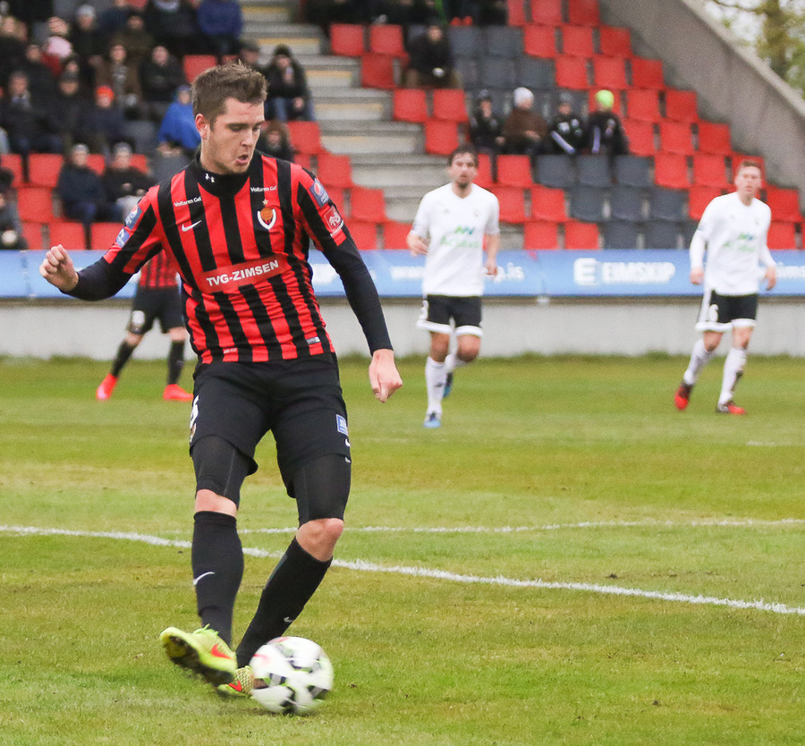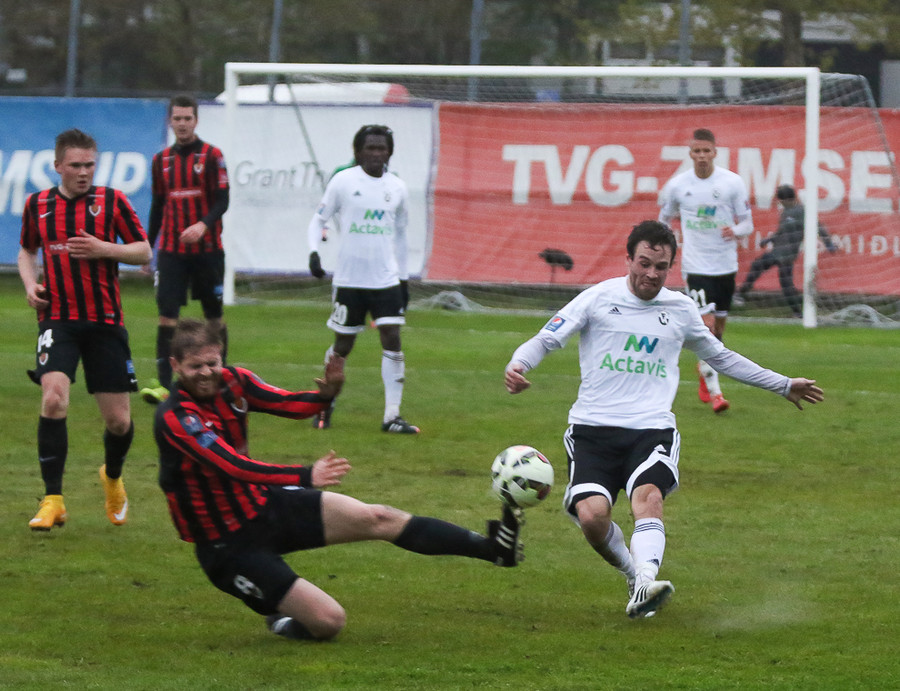 Arnþór Ingi með frábæran skalla sem enda í slánni. Frábær fyrirgjöf frá aukaspyrnu Ívari.