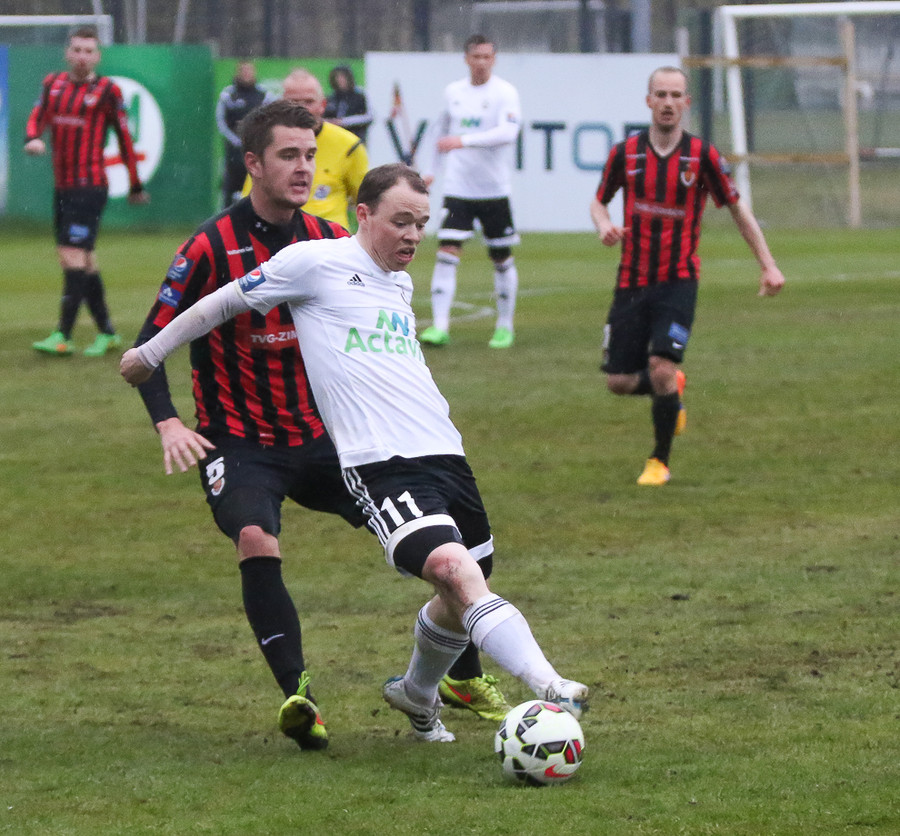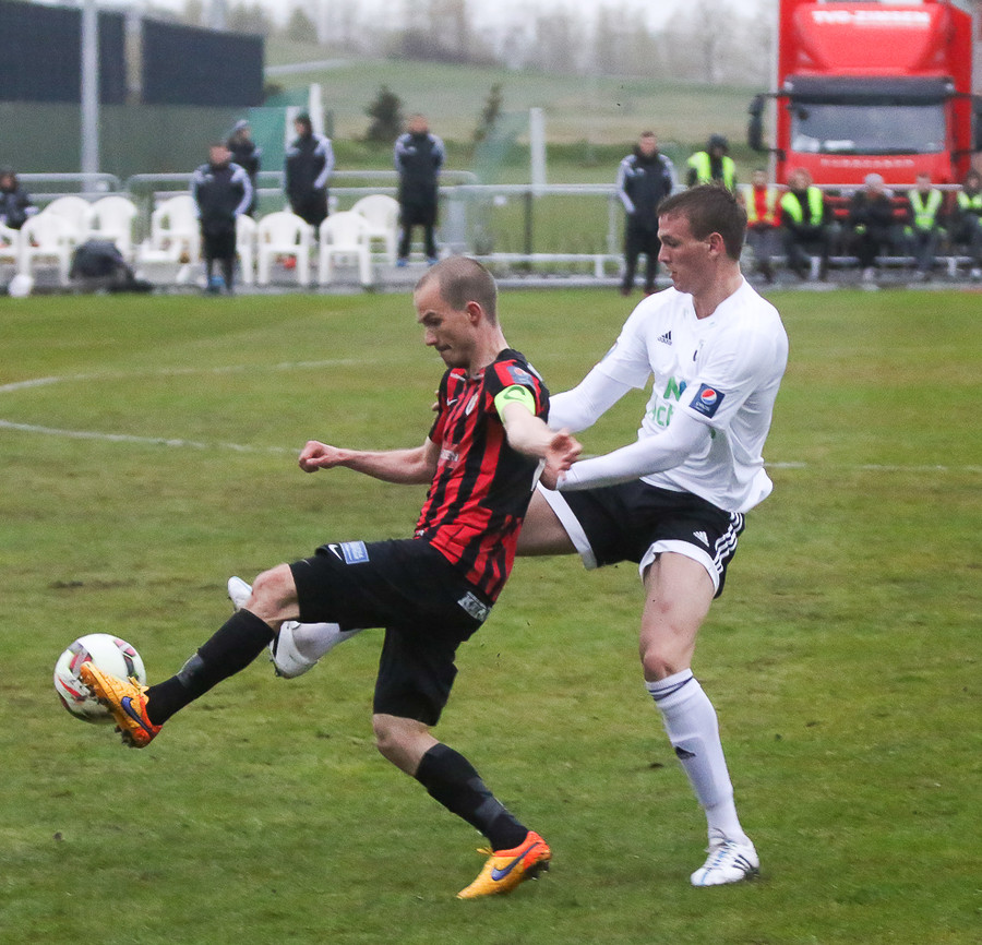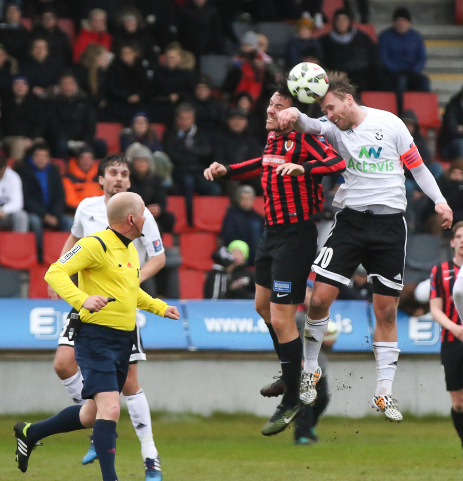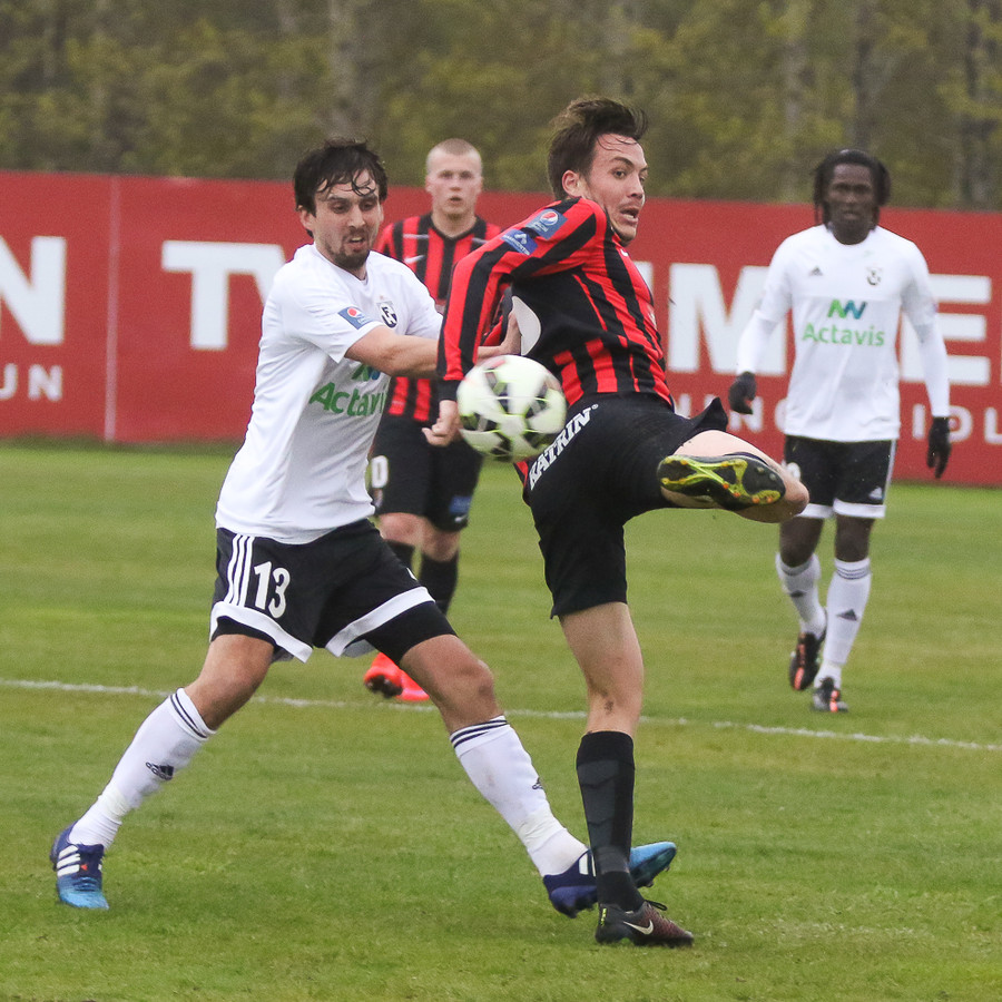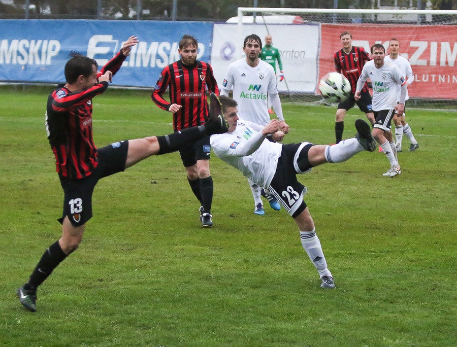 Arnþór Ingi með frábæran skalla sem enda í slánni. Frábær fyrirgjöf frá aukaspyrnu Ívari.