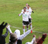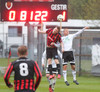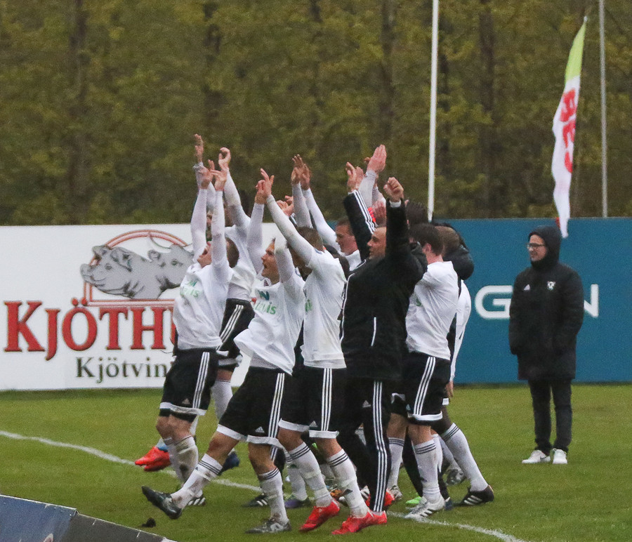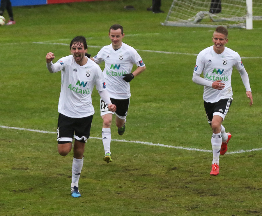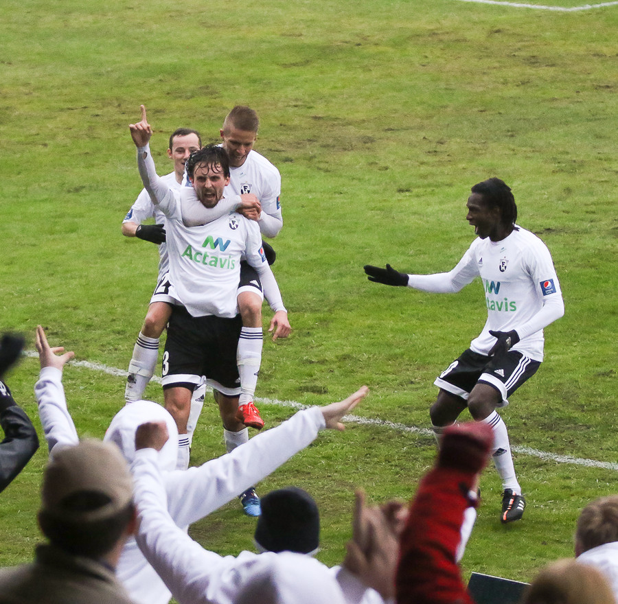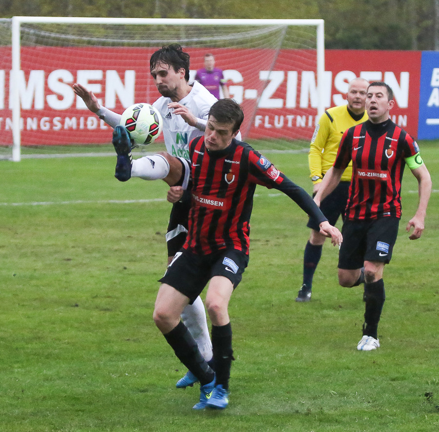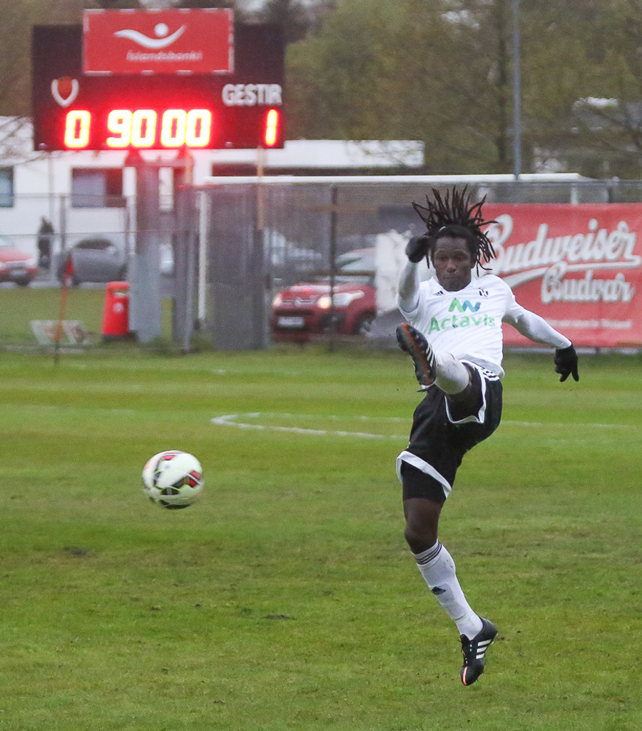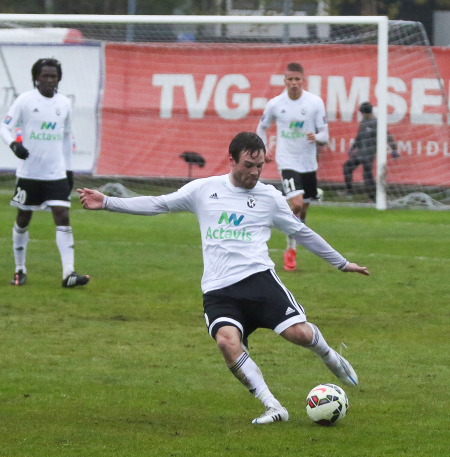 Jón Ragnar átti frábæra fyrirgjöf og þar kom Bjarni Þór Viðarsson og stökk hæst og stangaði boltann í netið. Set smá spurningarmerki við Nielsen fannst hann eiga að vera þetta.