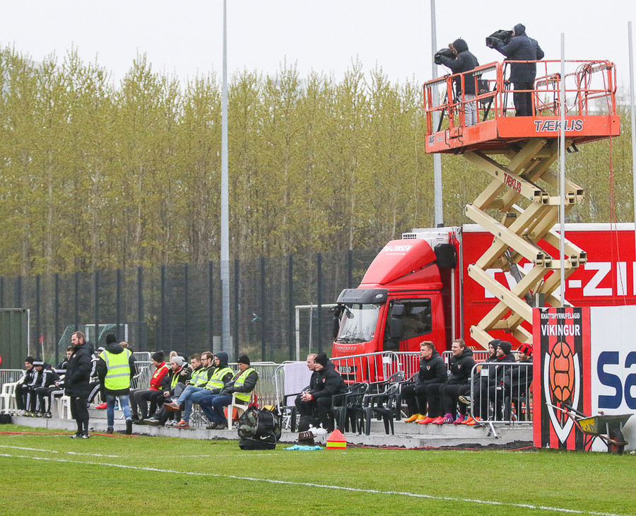 Athygli vekur að engin varamannaskýli eru til staðar og einungis stólar fyrir varamenn. Þetta gæti orðið kalt kvöld fyrir varamennina.