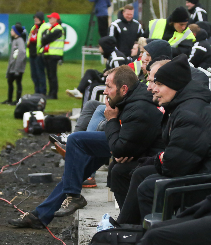 Síðari hálfleikur hafinn. Okkur er orðið kalt og viljum fá mörk til að hlýja okkur