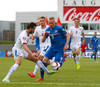 Íslendingar halda pressunni áfram, Emil kemur með fyrirgjöf og í kjölfarið er sparkað í höfuðið á Aroni Einari.