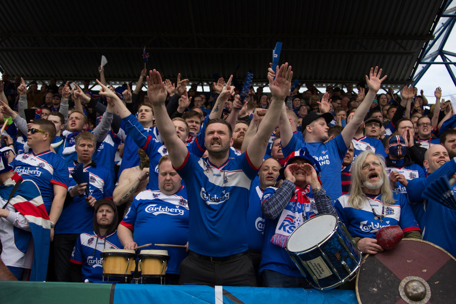 Stúkan er að fyllast og tekur vel undir, bæði í þjóðsöngnum og klappar vel fyrir því þegar Röddin kynnir byrjunarlið Íslands!