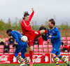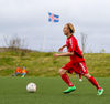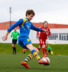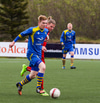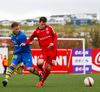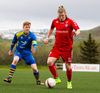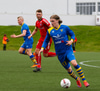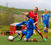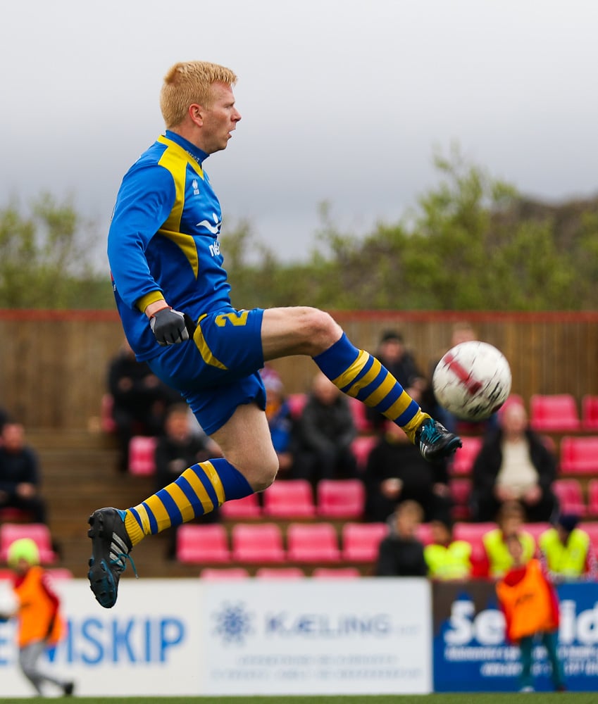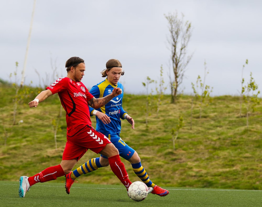 Pétur Theódór kominn í dauðafæri en ætlar að vippa fyrir Magnús í markinu. Magnús grípur vippuna frá Pétri.