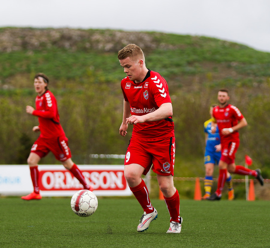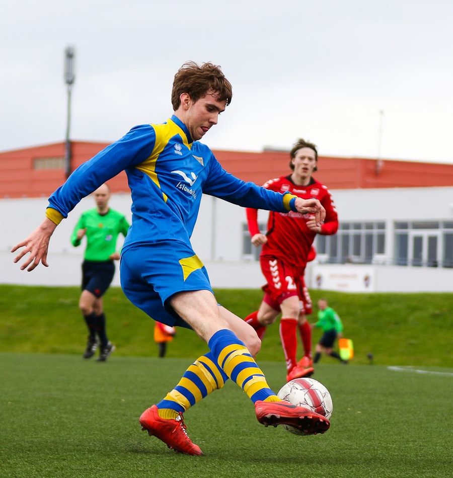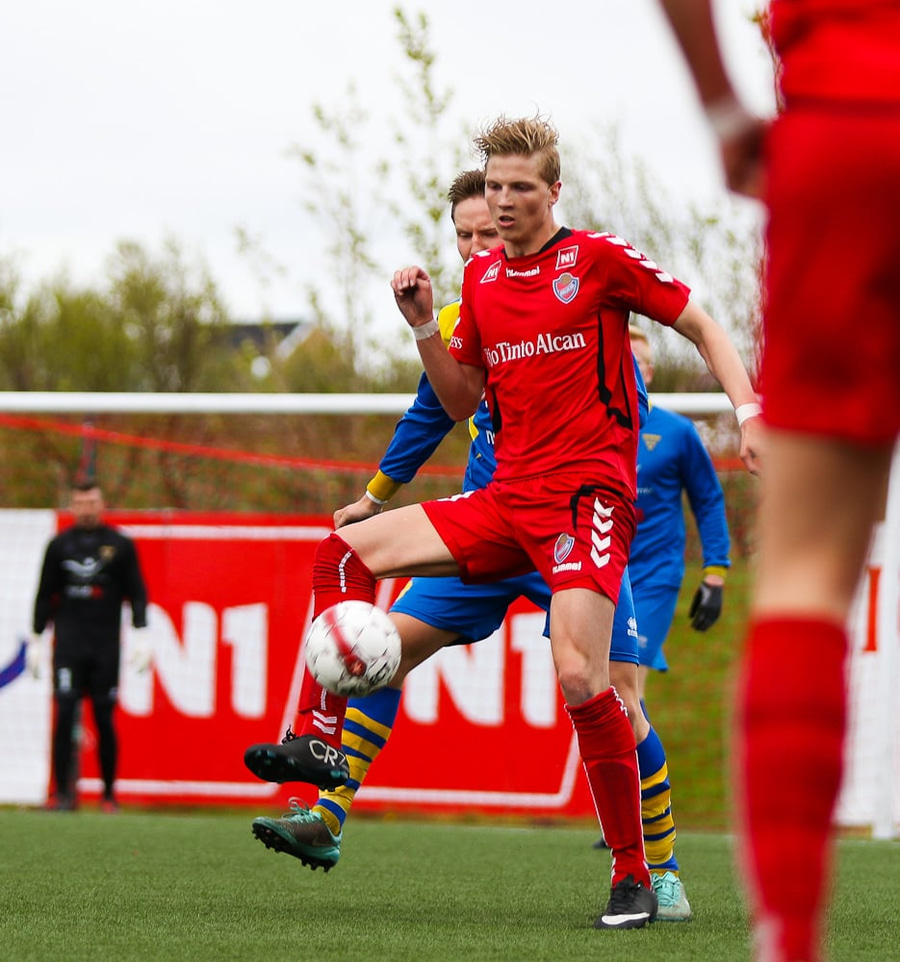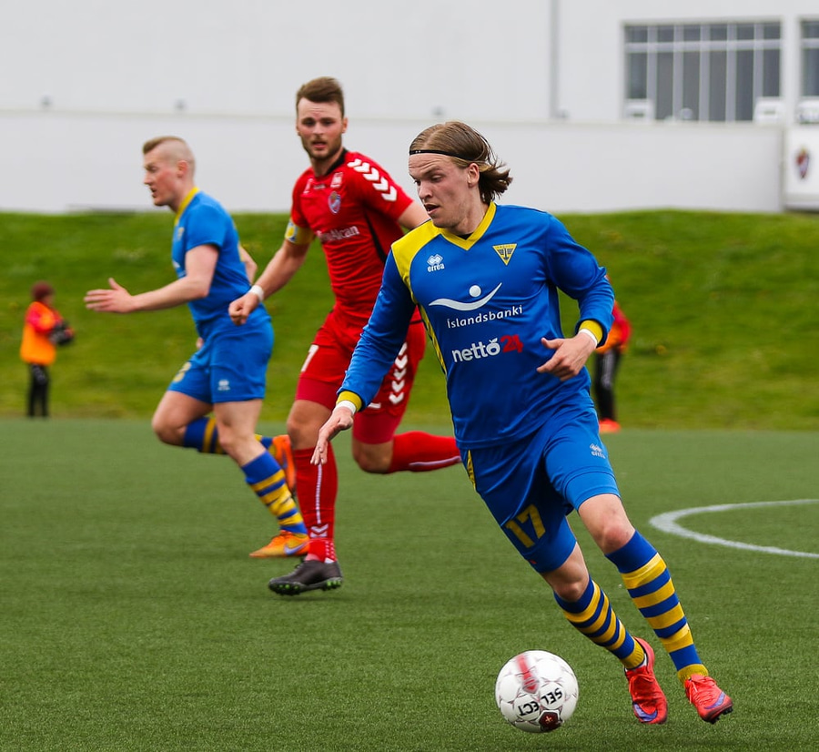 Daníel Snorri fer upp vinstri kantinn, fer síðan inn á miðjuna og reynir fyrirgjöf. Fyrirgjöfin fyrir neðan allar hellur og beint í fangið á Árna Frey í markinu.