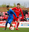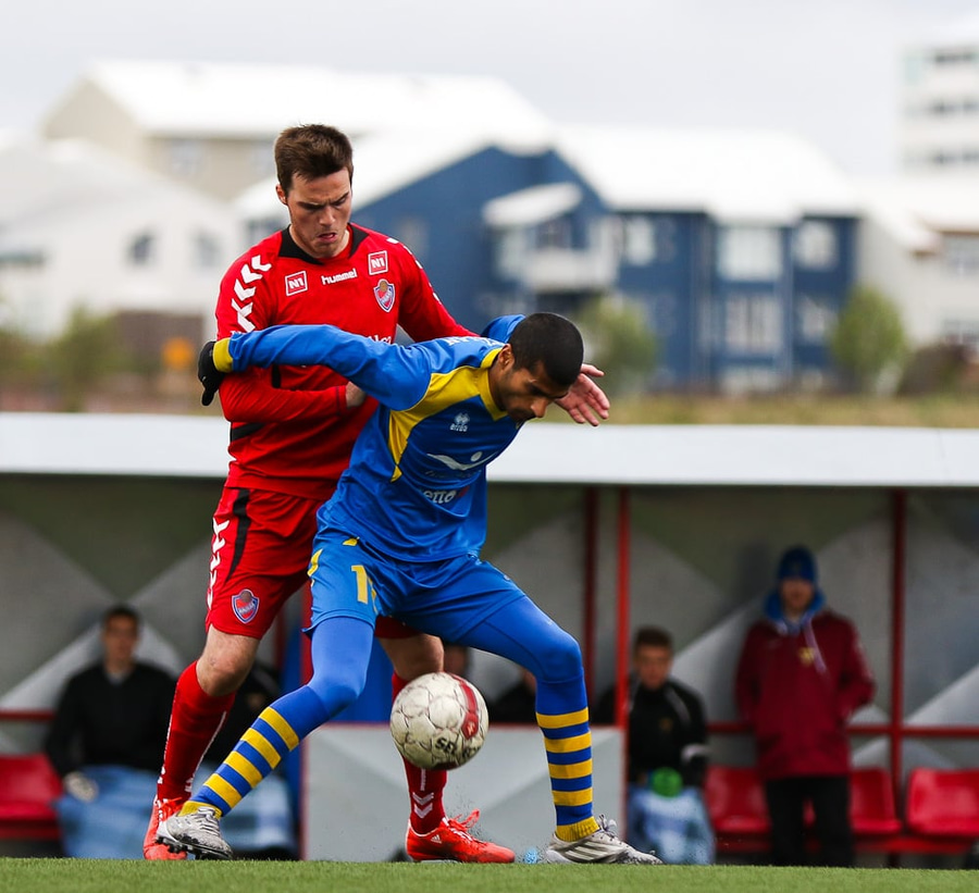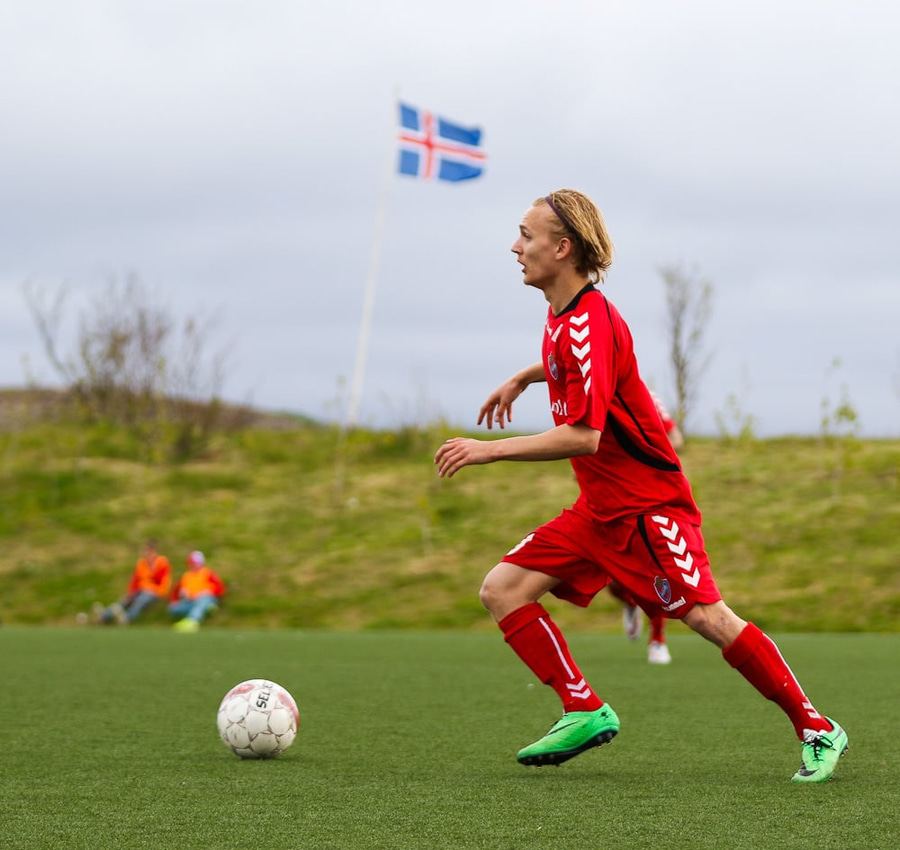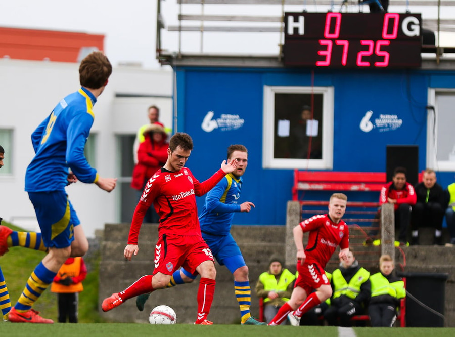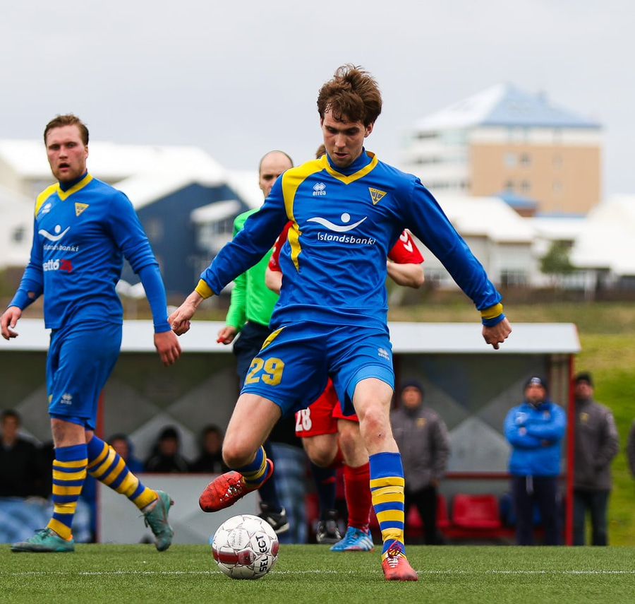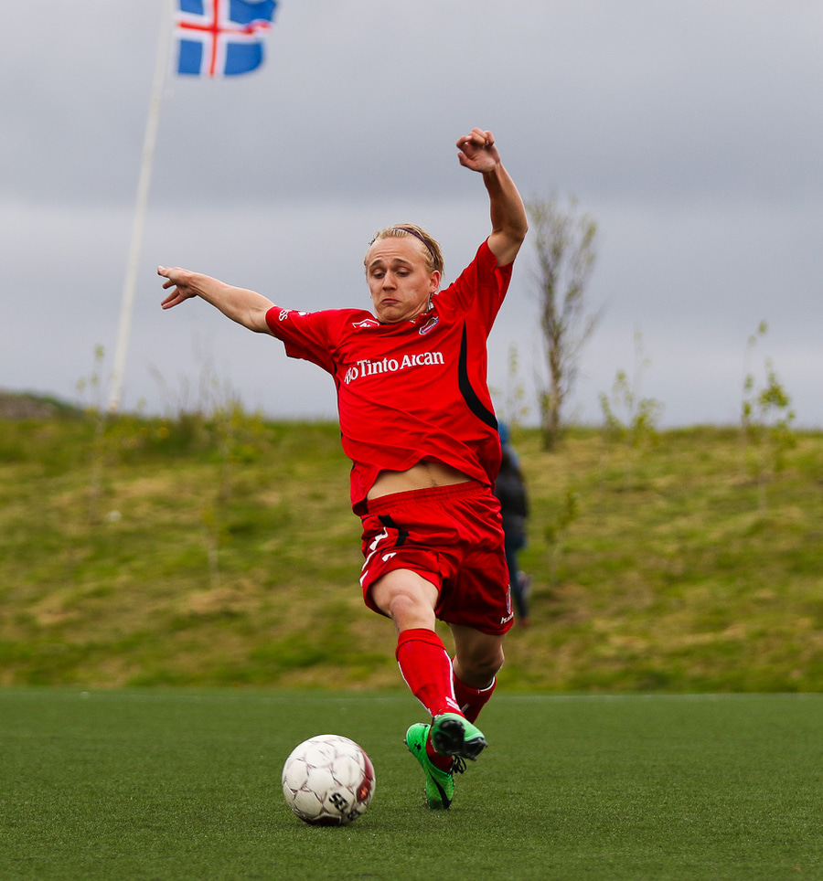 Daníel Snorri fer upp vinstri kantinn, fer síðan inn á miðjuna og reynir fyrirgjöf. Fyrirgjöfin fyrir neðan allar hellur og beint í fangið á Árna Frey í markinu.
