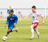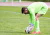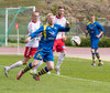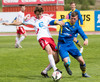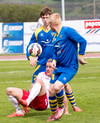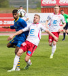 Atgangur við mark gestanna. Klafs í teignum þar sem Jónas reynir að ná til boltans en Árni í markinu nær á undan honum í boltan