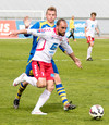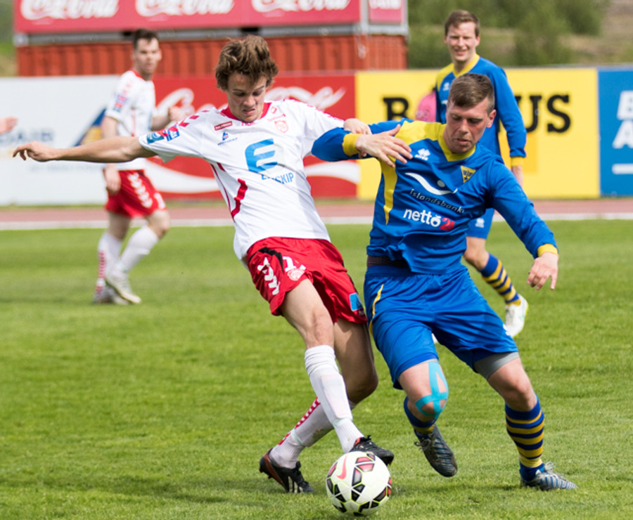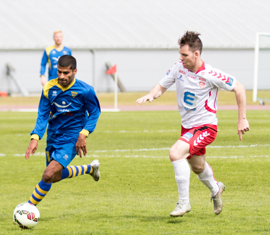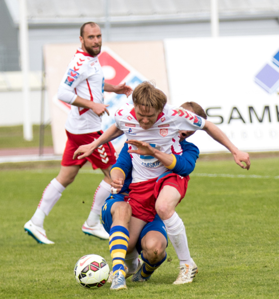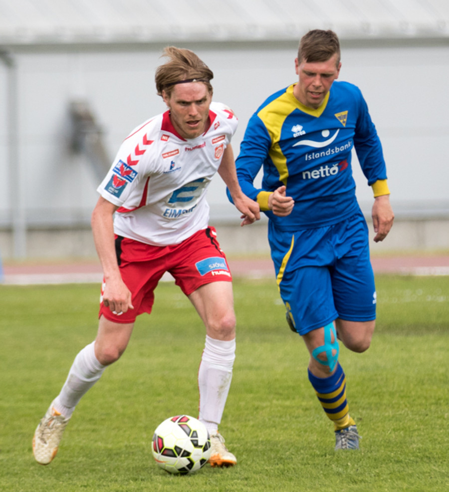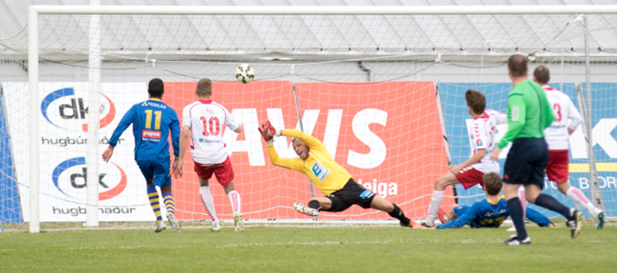 Strax í næstu sókn kemst Jóhann Helgi í gott færi en Árni ver vel. Aðeins tímaspursmál hvenær fyrsta markið kemur