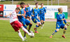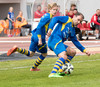 Jónmundur með hættulega fyrirgjöf sem lekur framhjá öllum í teig heimamanna. Þarna vantaði bara einn bláann á fjærstöng
