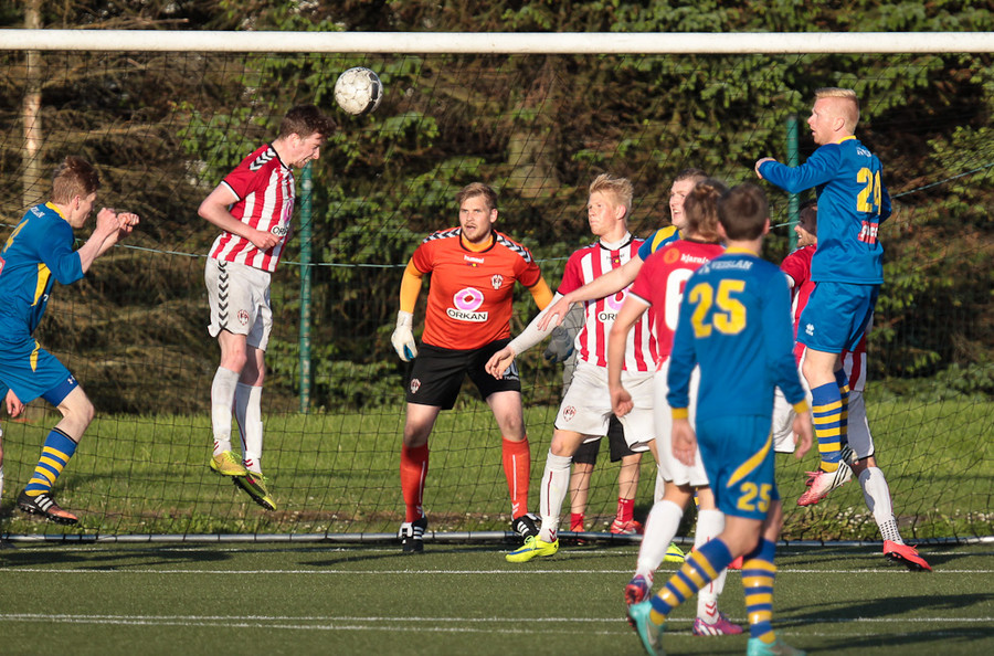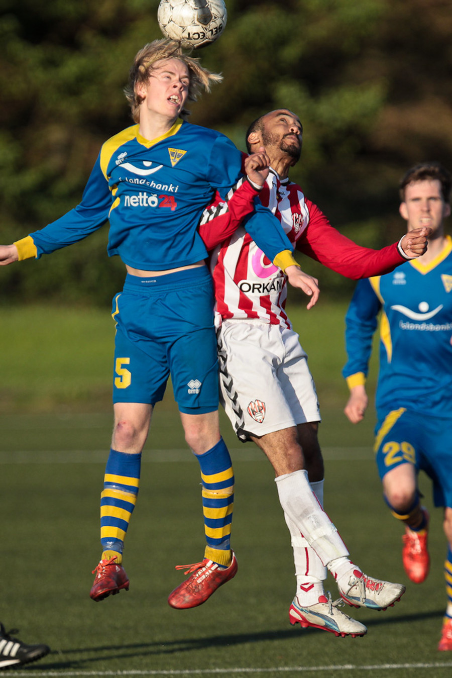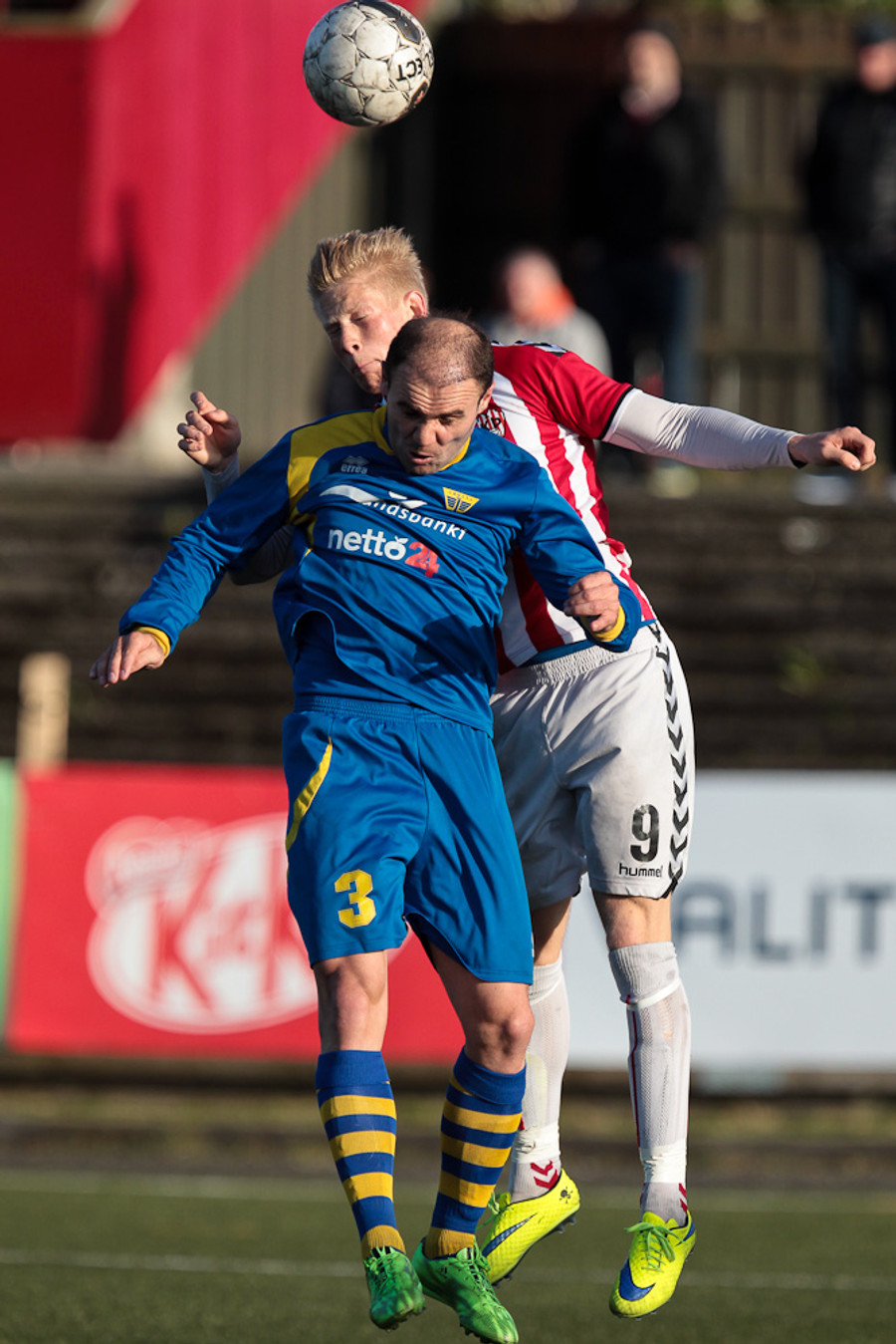 ÞRÓTTUR KEMST YFIR!!! Rafn Andri Haraldsson með skalla sem Árni Freyr náði ekki að verja. Frábær fyrirgjöf frá hægri.