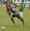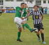 Úfffff... Cork hefði getað skorað annað þarna! Karl Sheppard sýnir styrk sinn í teignum og skaut naumlega framhjá.