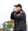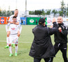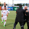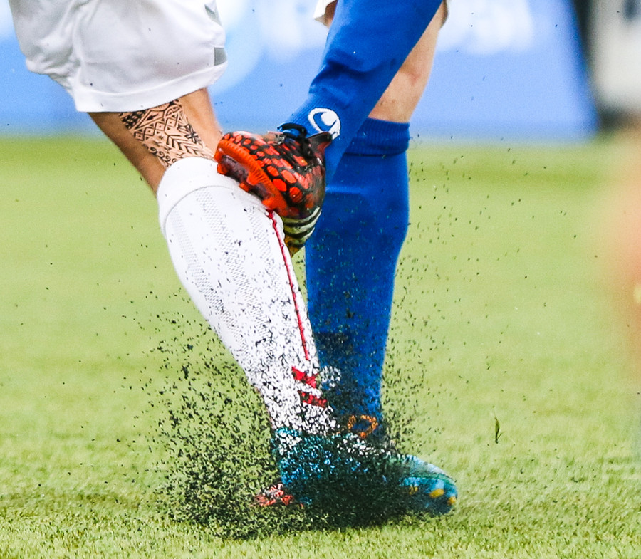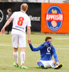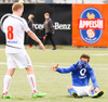 Haukur Páll og Óli Kalli lentu í samstuði og liggur Haukur Páll eftir og heldur um magann á sér.
