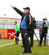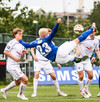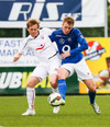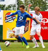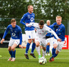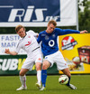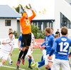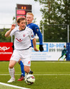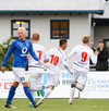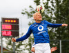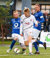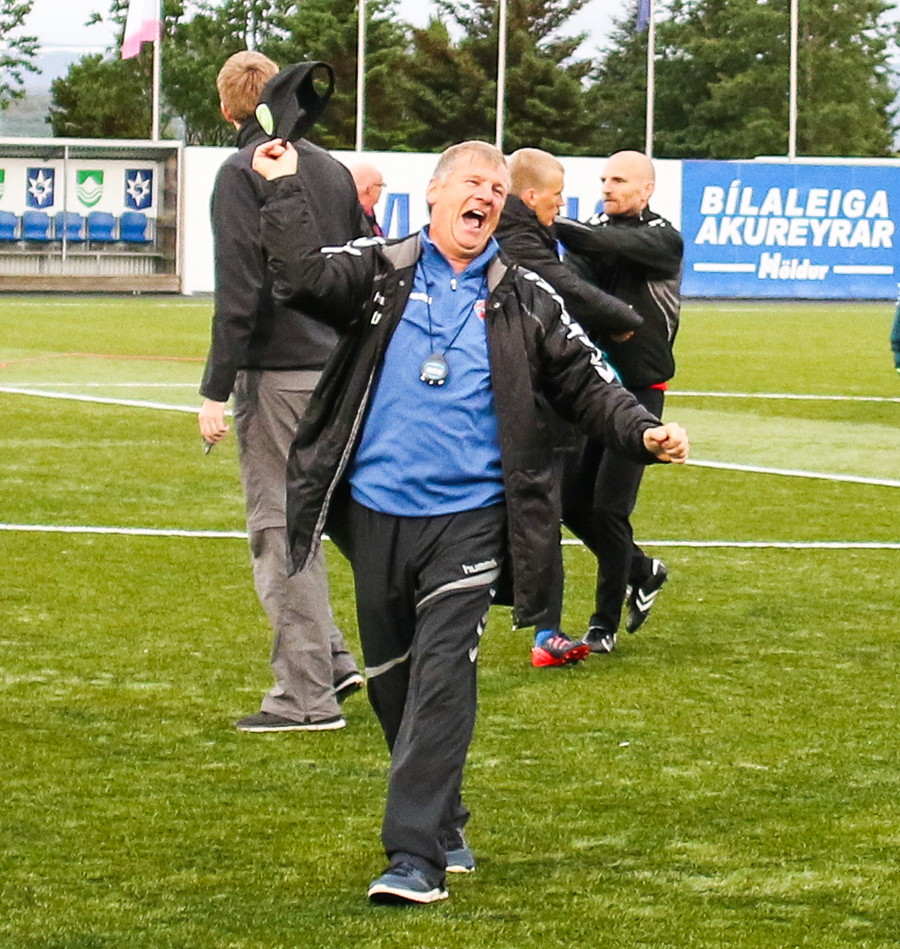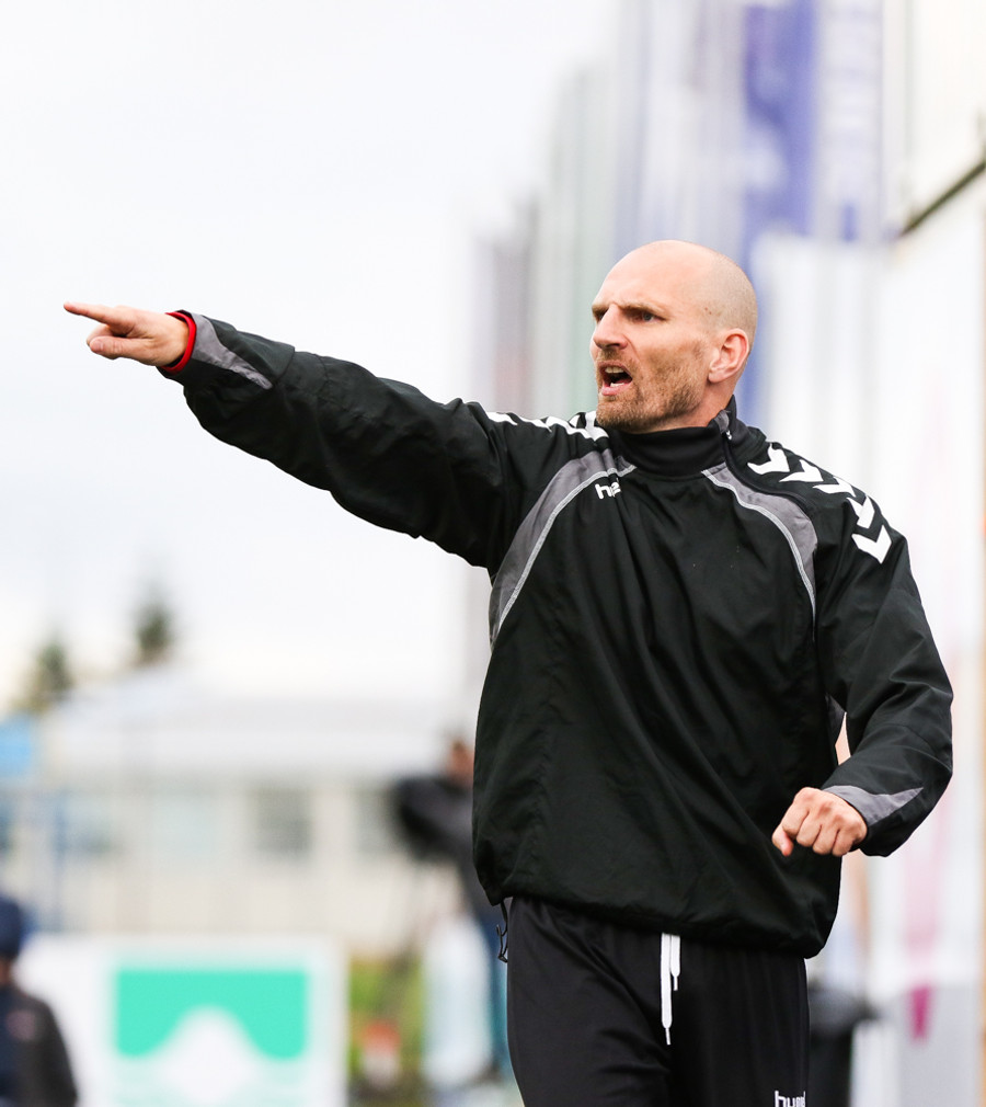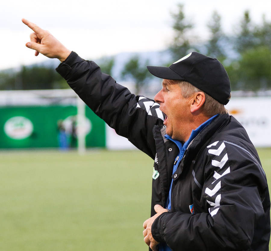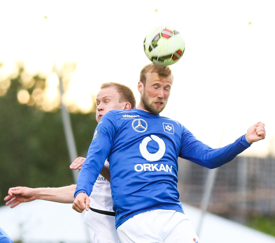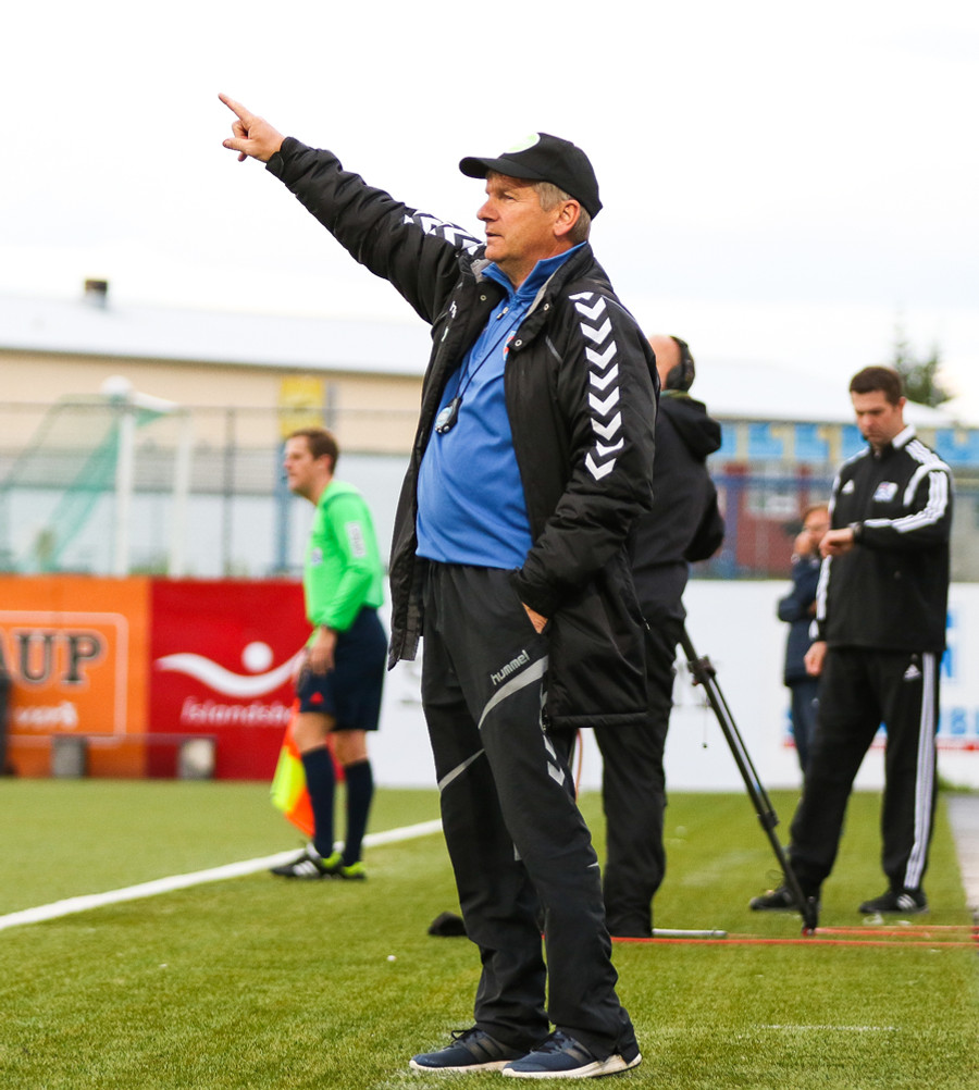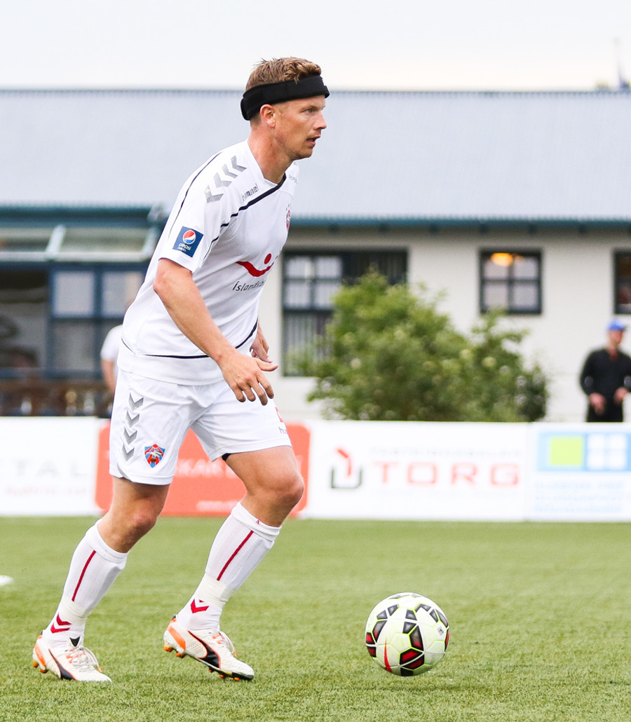 Jón Arnar Barðdal kastaði sér fram í skalla en boltinn fór framhjá markinu. Hefði verið drauma innkoma!