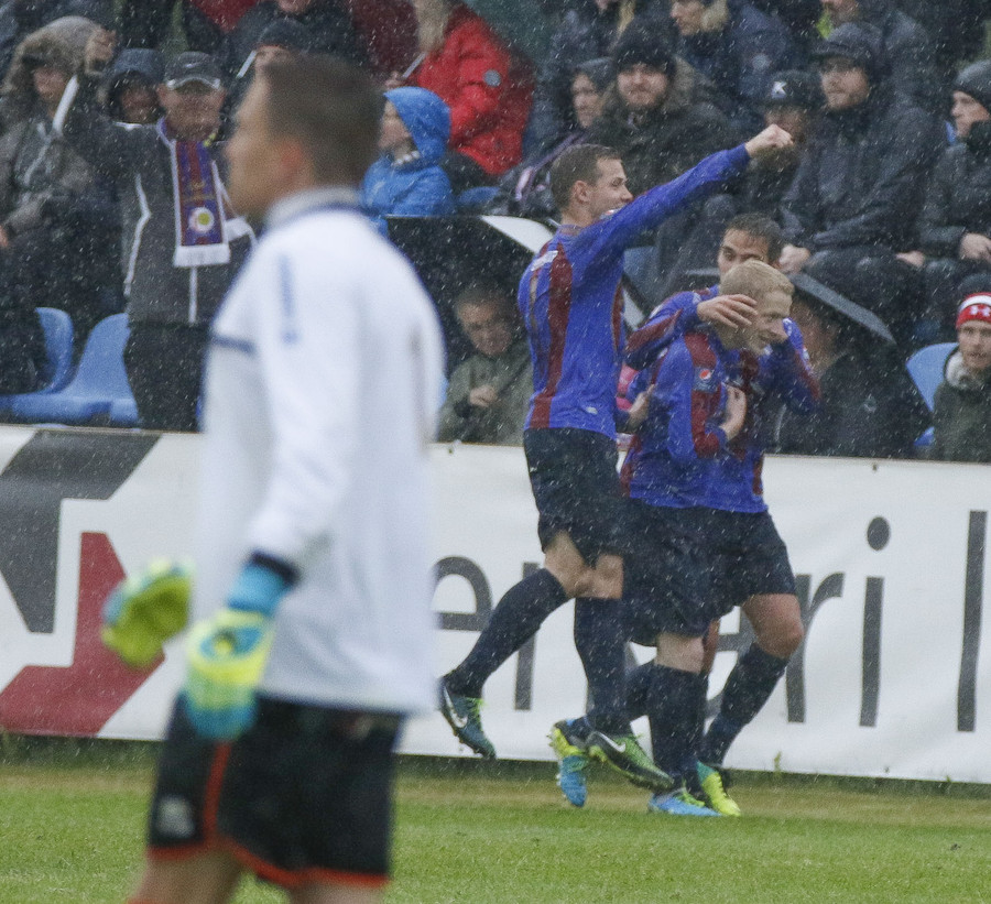 Aðstæður hér hafa mikil áhrif á leikinn. Menn eru rennandi á blautu grasinu eins og enginn sé morgundagurinn. Fyrir utan þetta mark hefur ekkert alvöru færi komið og heimamenn ekki náð að ógna marki Keflavíkur.