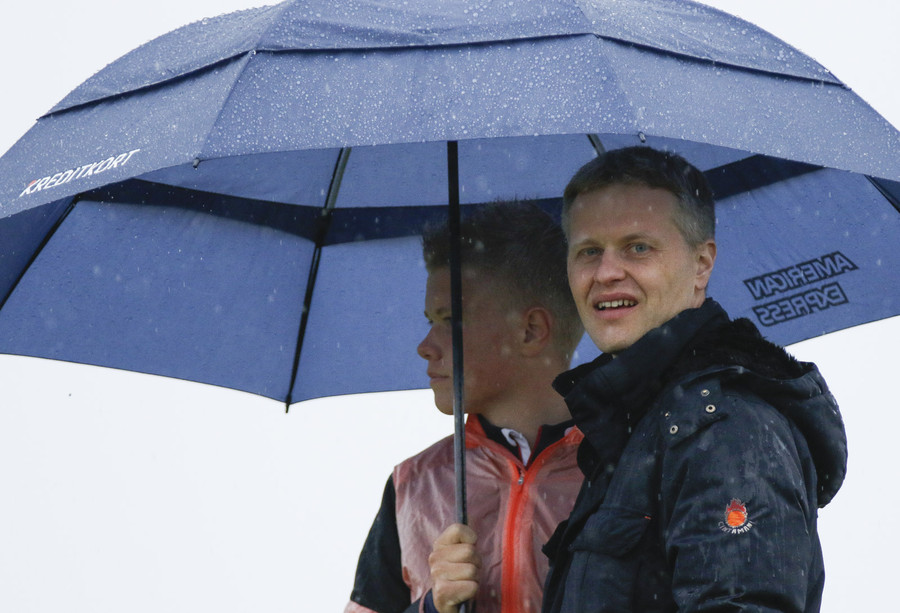 Lýsingin mín gæti orðið eitthvað sérstök því að það rignir á blaðamannaskúrinn og glerið er jaaa...ekki með rúðuþurrkur og skyggnið því orðið ansi brenglað....