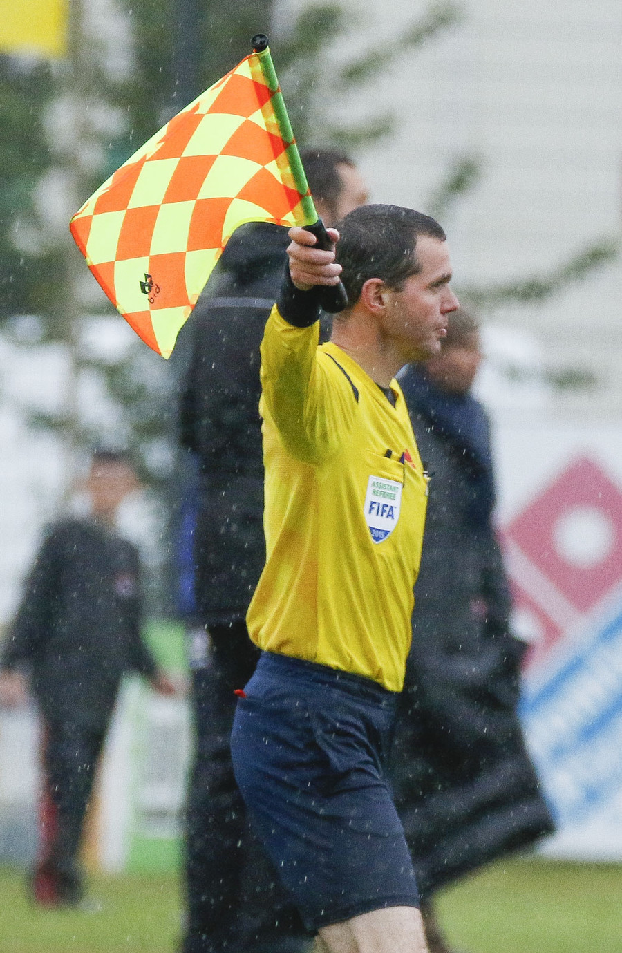 Fær gult spjald fyrir leikaraskap af ,,bestu" gerð þegar hann kastar sér í jörðinna og heldur um andlitið án þess að nokkur leiknismaður komi nálægt honum.