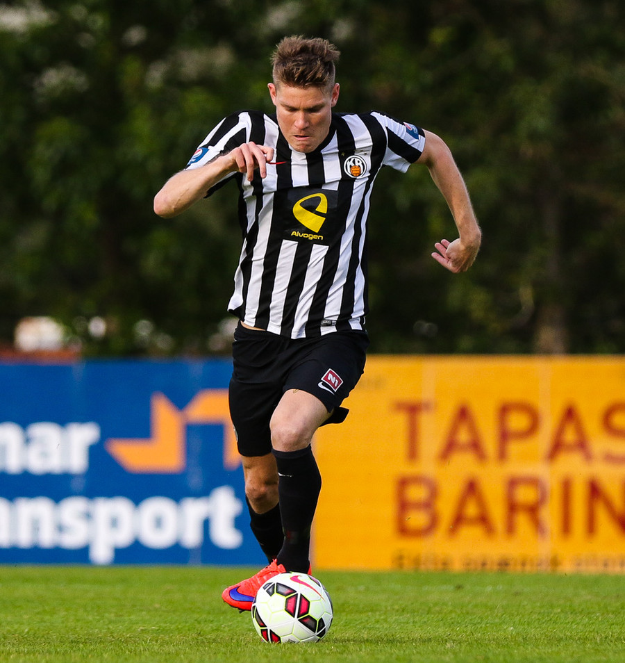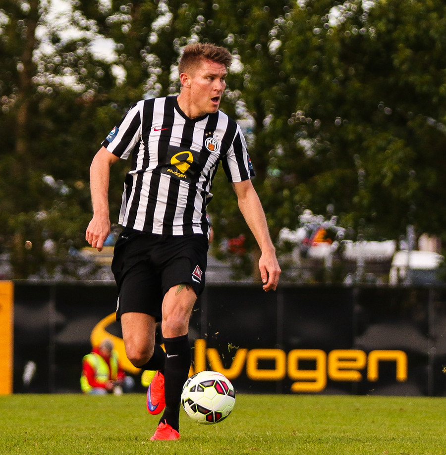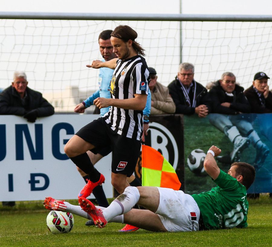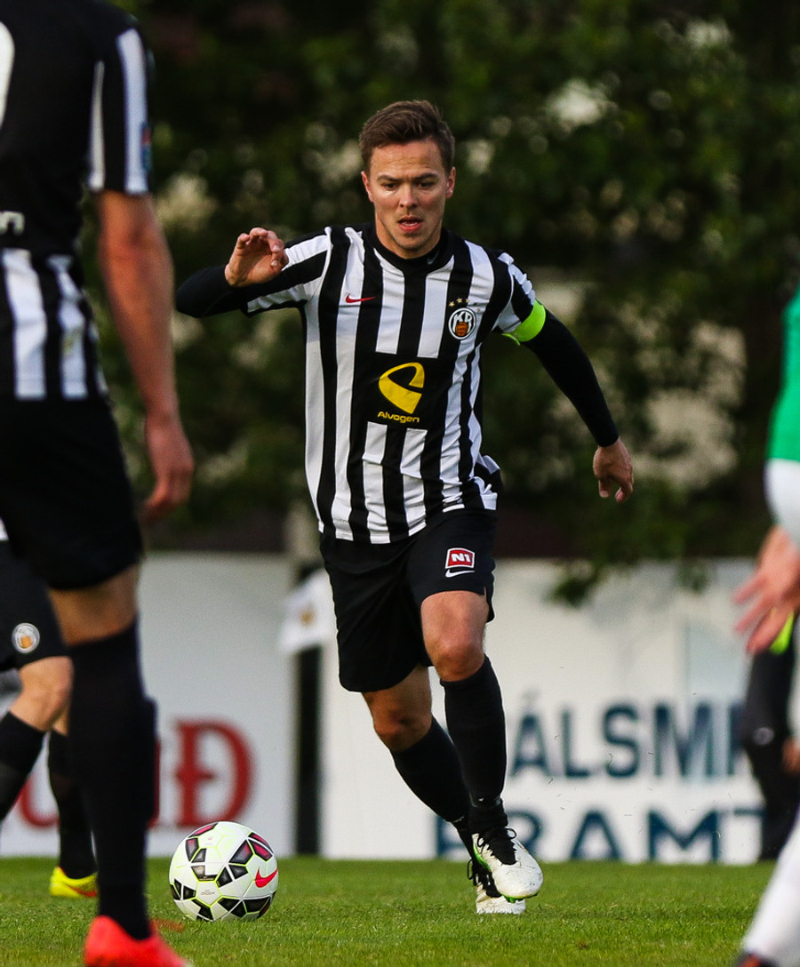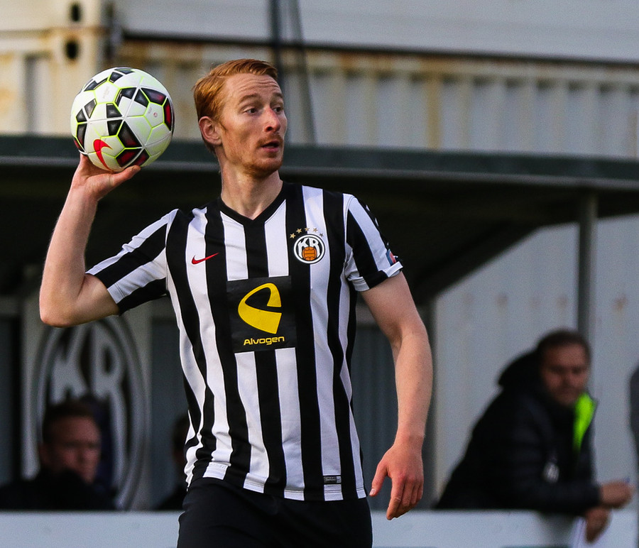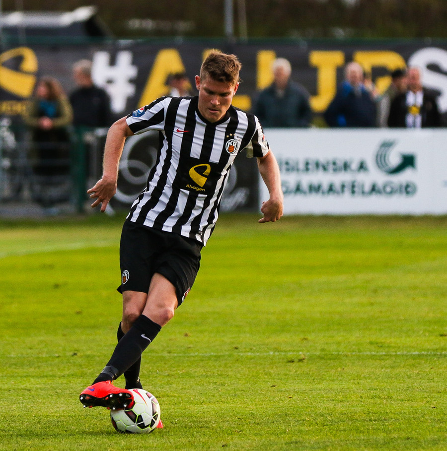 Talandi um Kristinn Jónsson. Sören er við það að komast í mjög gott færi en Kristinn kemur með svakalega tæklingu og bjargar. Frábær varnarleikur.