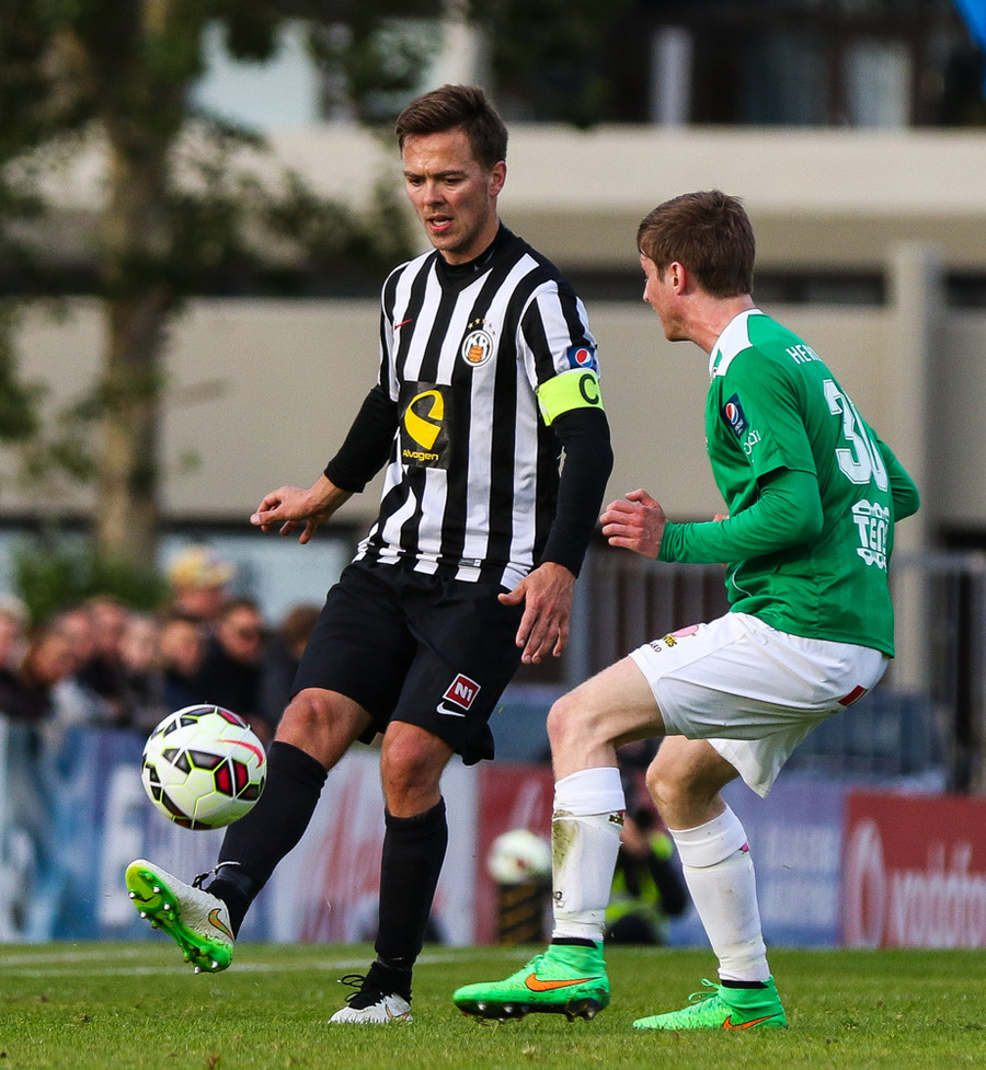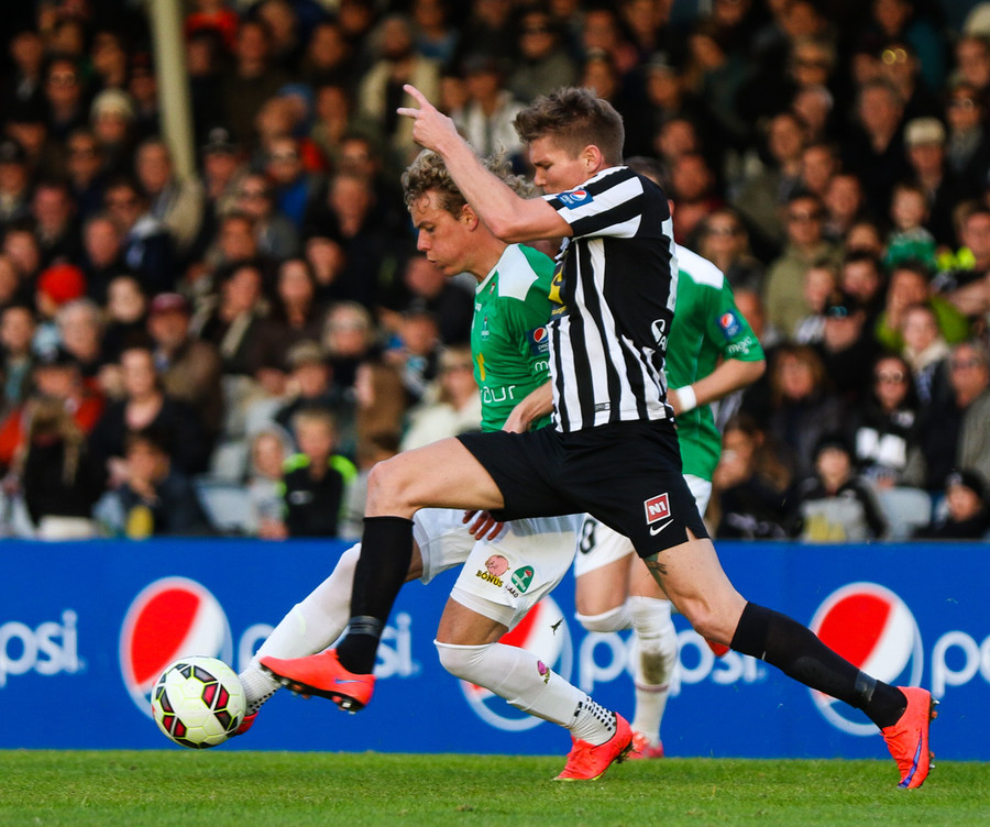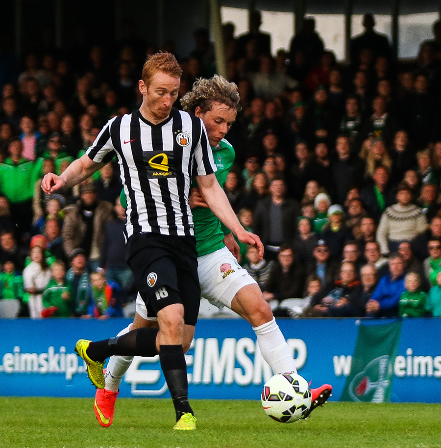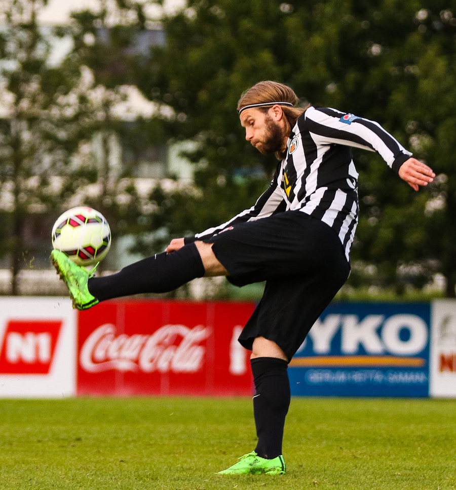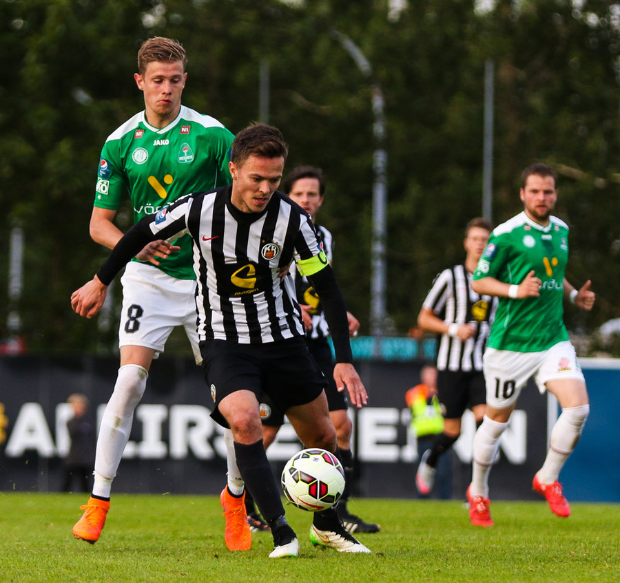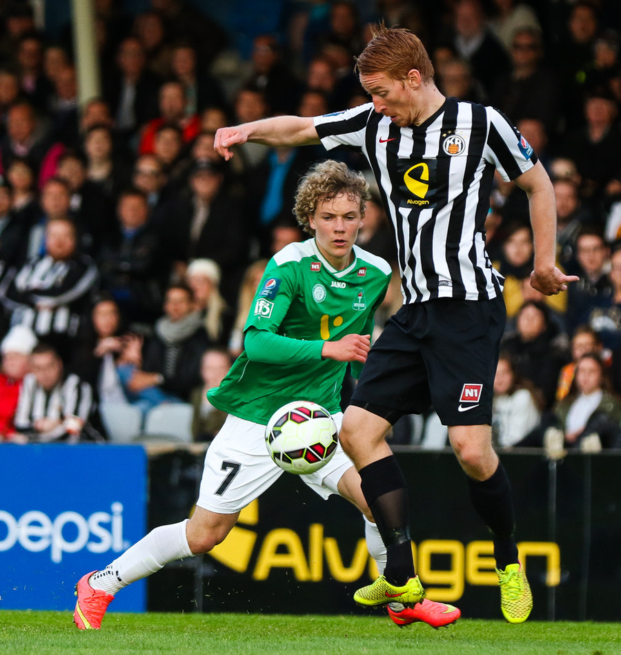 Talandi um Kristinn Jónsson. Sören er við það að komast í mjög gott færi en Kristinn kemur með svakalega tæklingu og bjargar. Frábær varnarleikur.