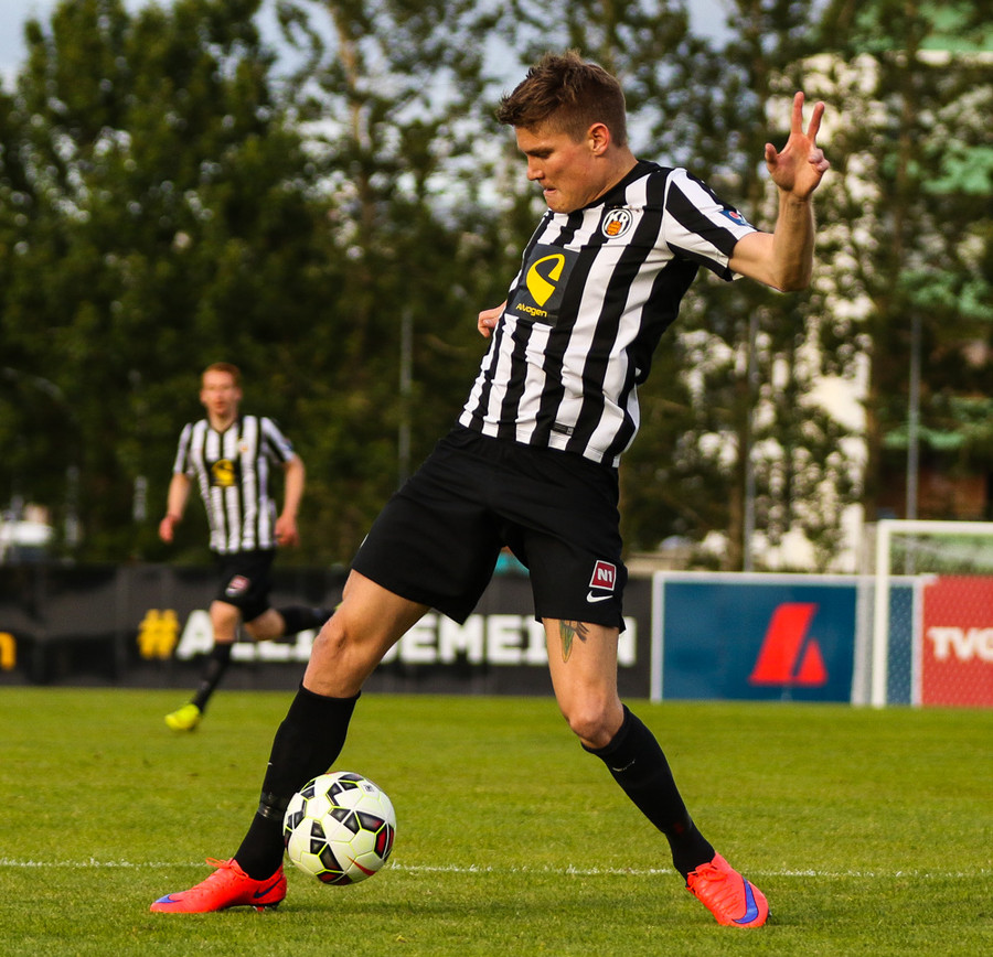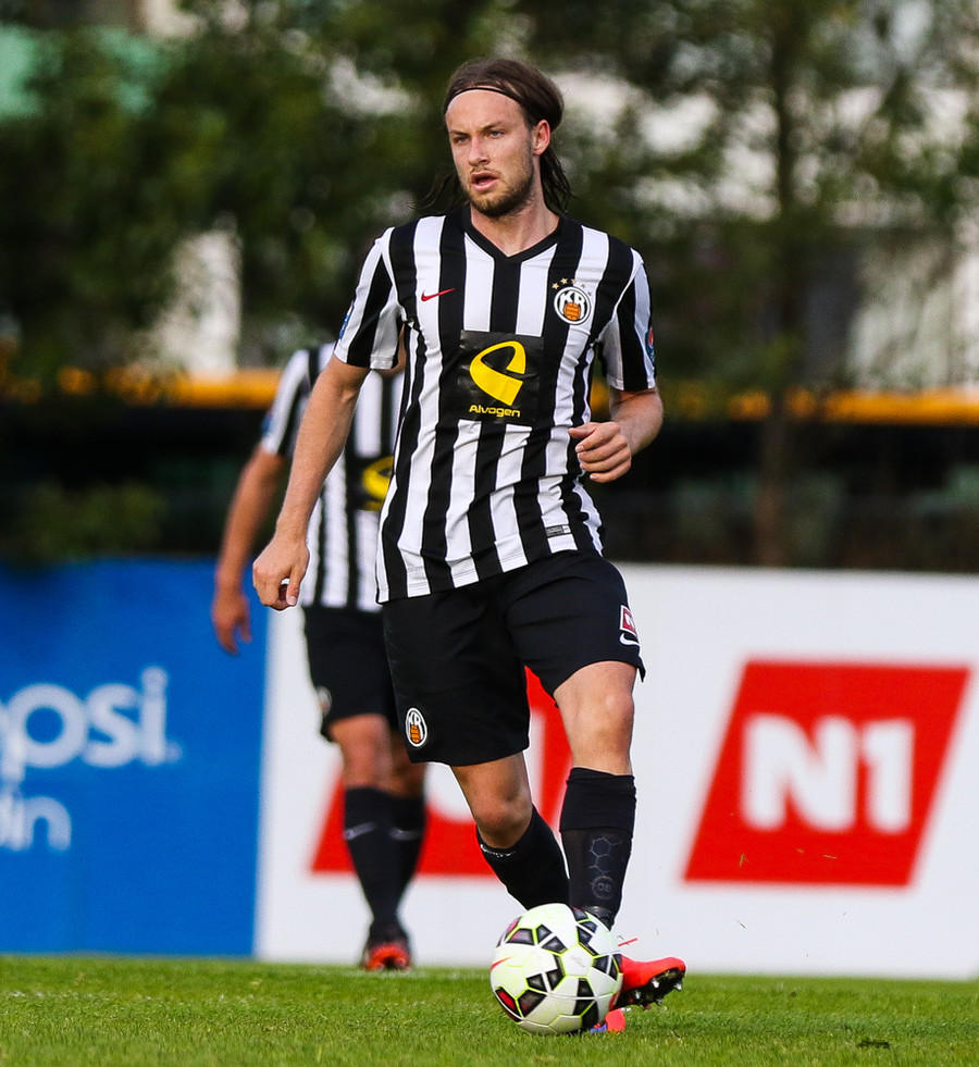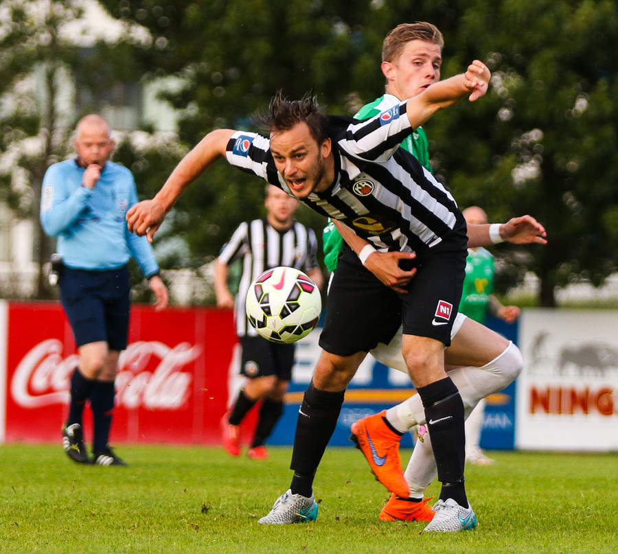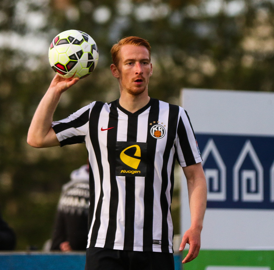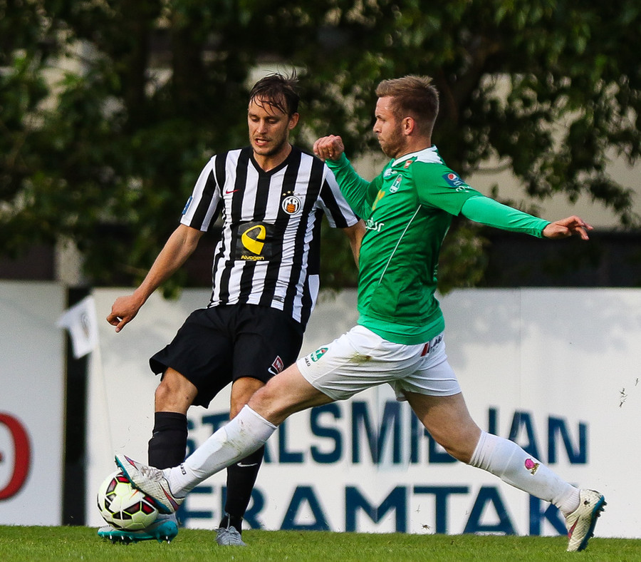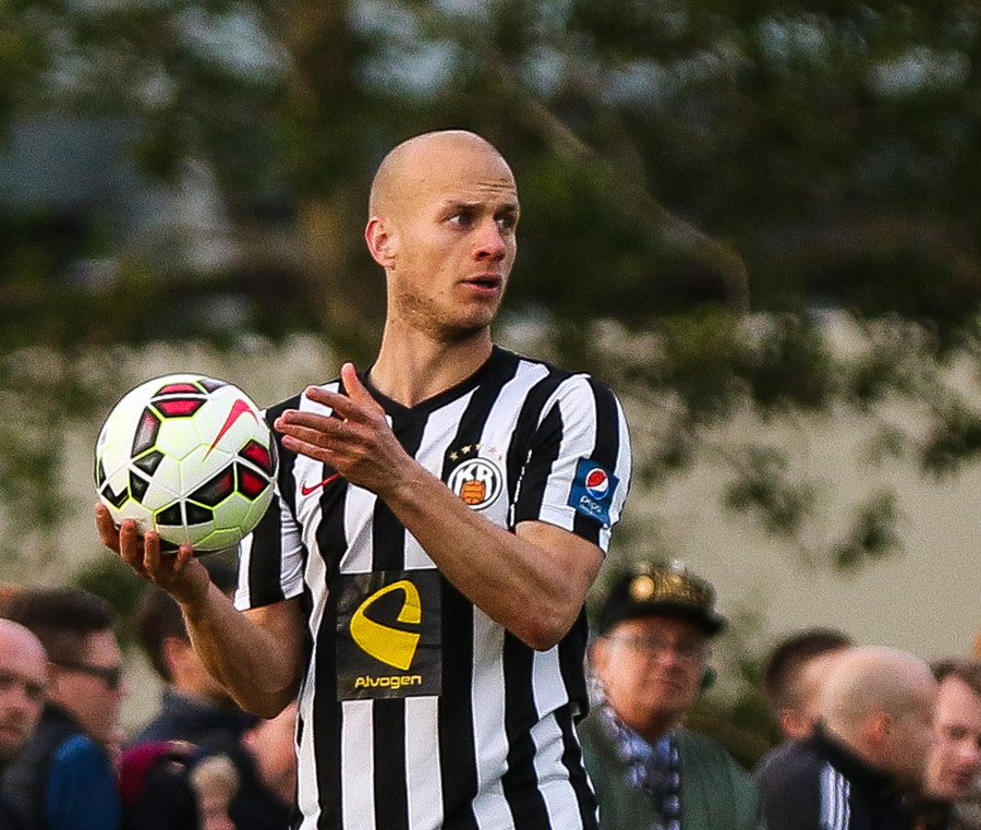 Talandi um Kristinn Jónsson. Sören er við það að komast í mjög gott færi en Kristinn kemur með svakalega tæklingu og bjargar. Frábær varnarleikur.