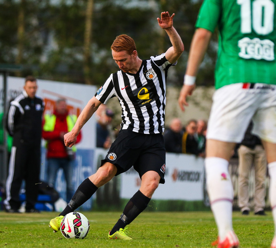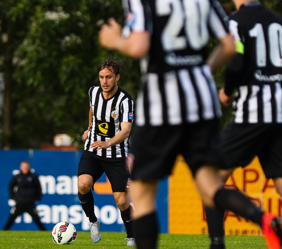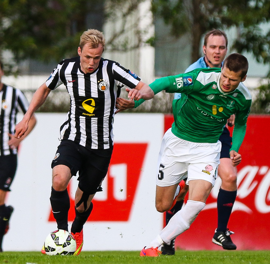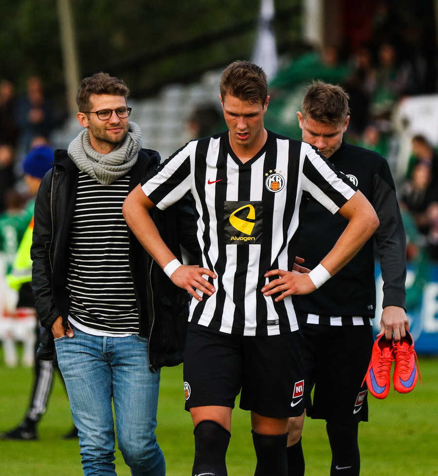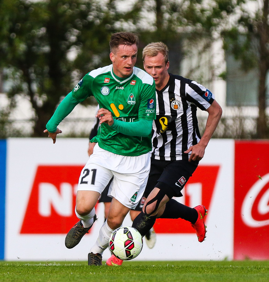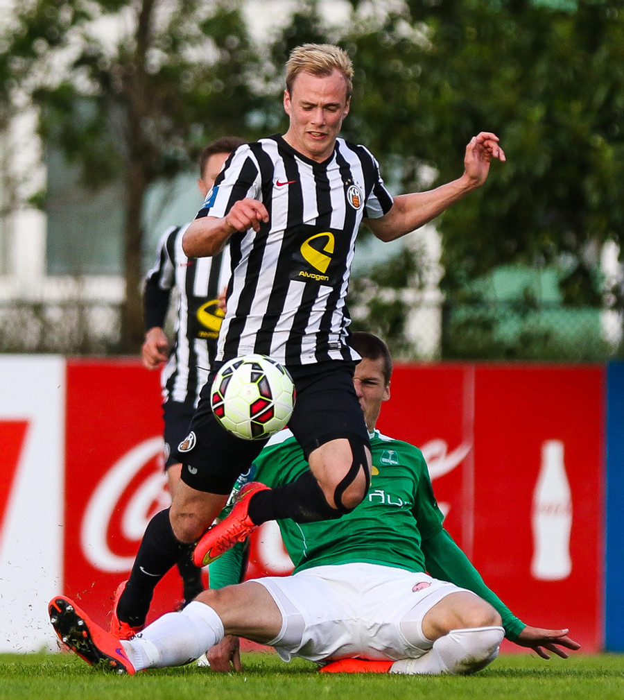 Talandi um Kristinn Jónsson. Sören er við það að komast í mjög gott færi en Kristinn kemur með svakalega tæklingu og bjargar. Frábær varnarleikur.