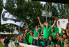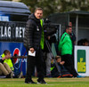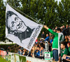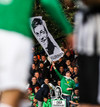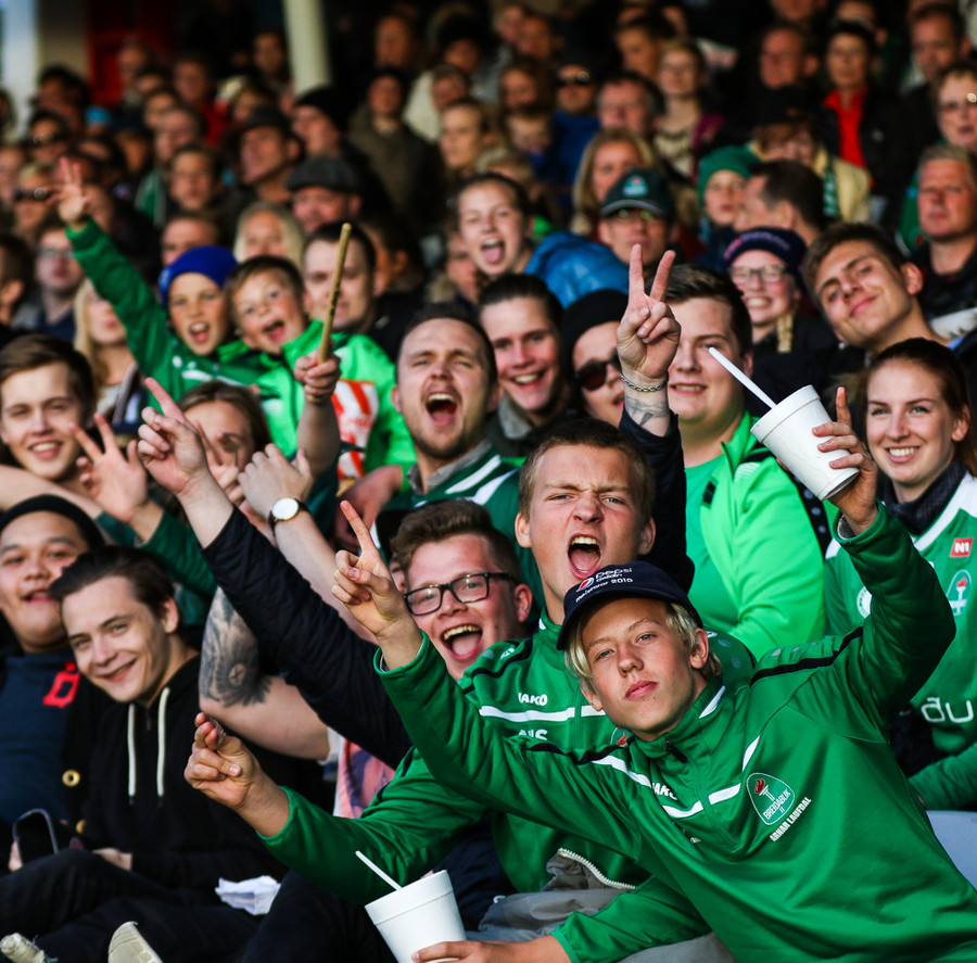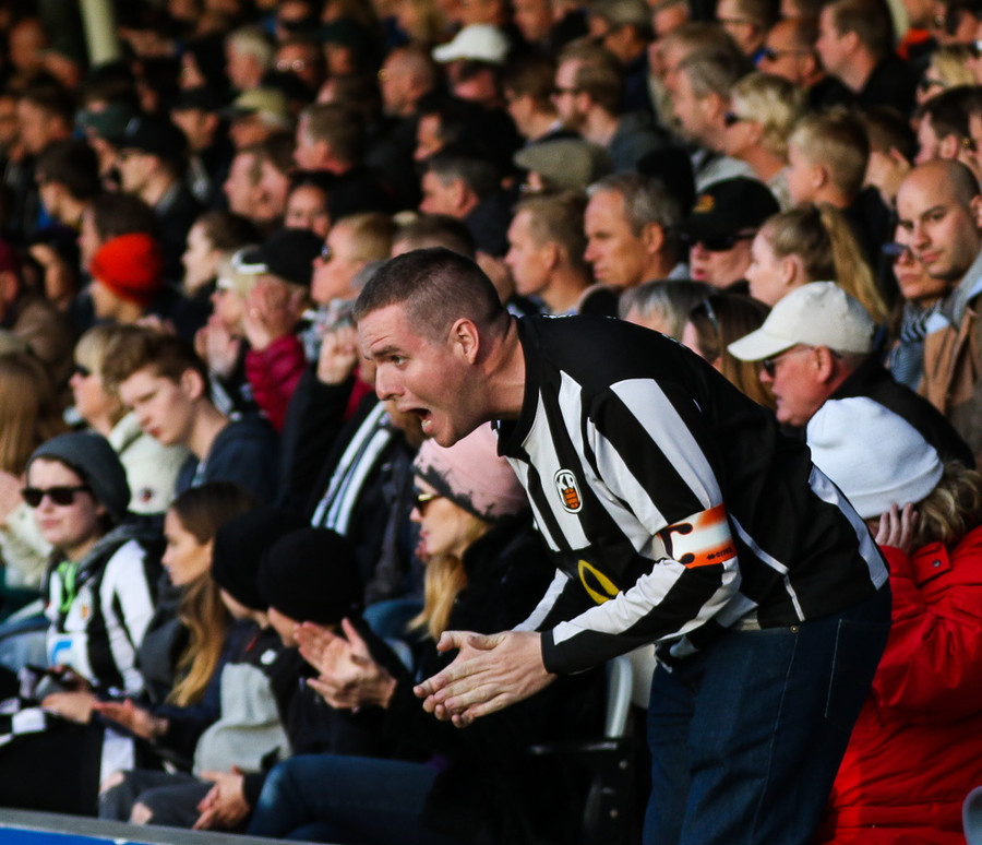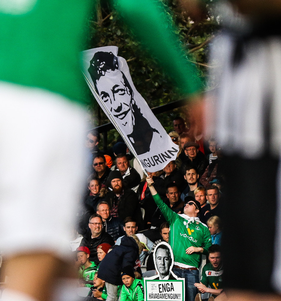Blikar eru ekki ánægðir með að mega ekki koma með trommur á völlinn. Þeir berja þess í stað í auglýsingaskiltin við hliðarlínuna.