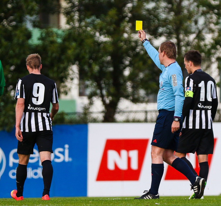 Heppinn að fá ekki rautt í þeim fyrri þannig Arnar Grétarson er skynsamur.