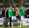 Stefán Logi er ennþá meiddur en það er verið að gefa honum aðhlynningu. KR-ingar ætluðu að gera tvöfalda breytingu. Hólbert og Óskar virtust vera á leiðinni inná. Spurning hvað gerist núna.