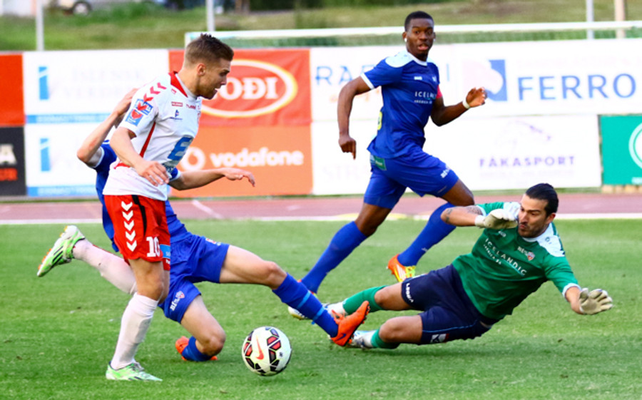 Kristinn Þór í besta færi sem ég hef séð! Frábærlega varið hjá Prattico en Kiddi átti að skora!