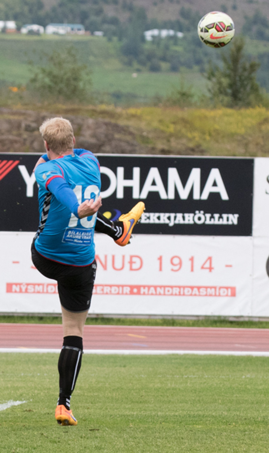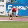 Jónas tekur Hjólhestaspyrnu sem Beitir ver í horn. Skemmtileg tilraun.