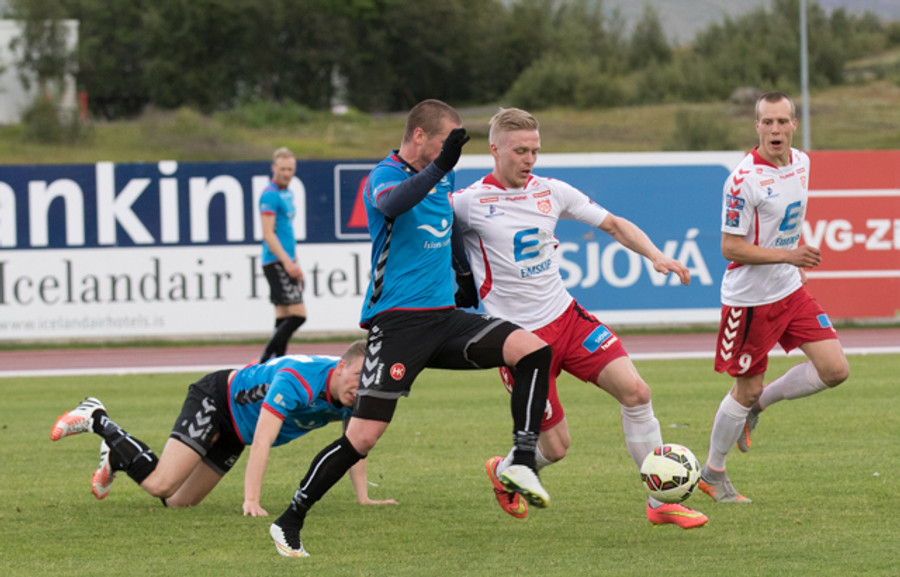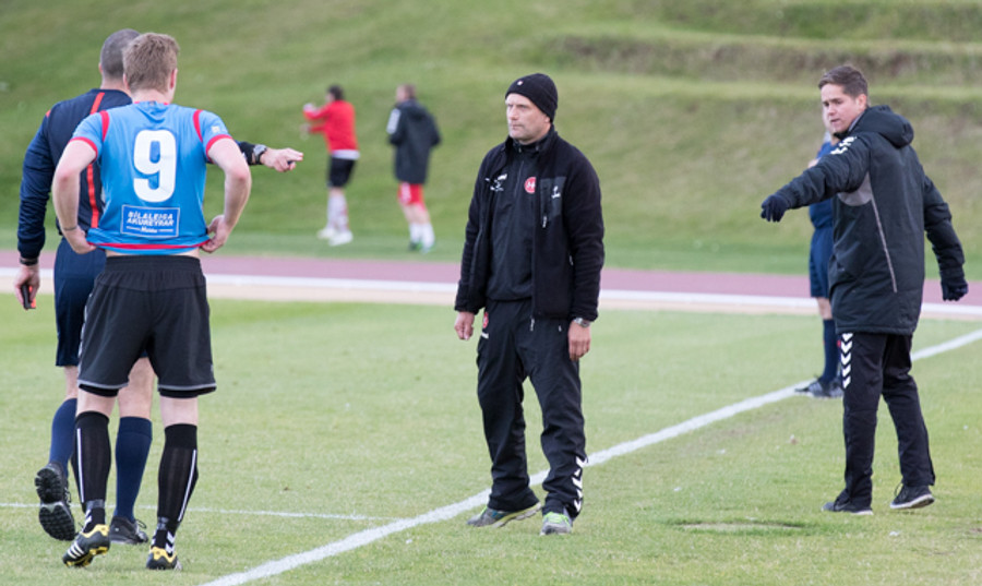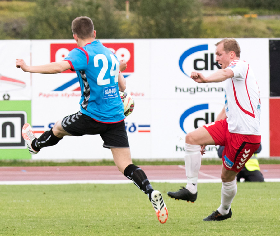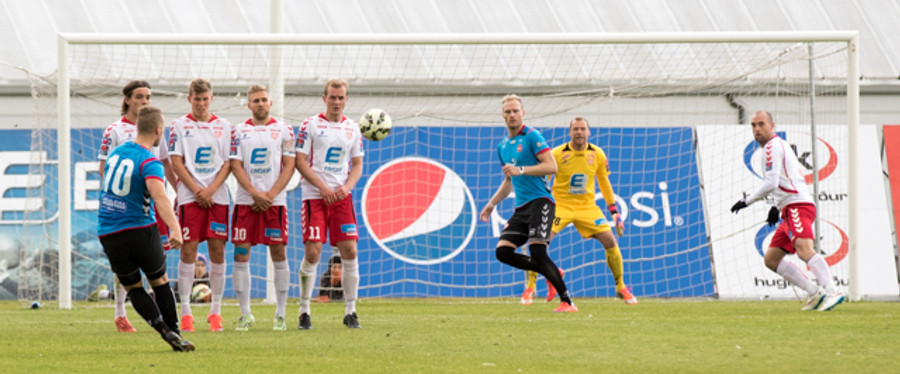 Braut á Sigurði Marinó við teiginn en ekkert varð úr aukaspyrnunni
