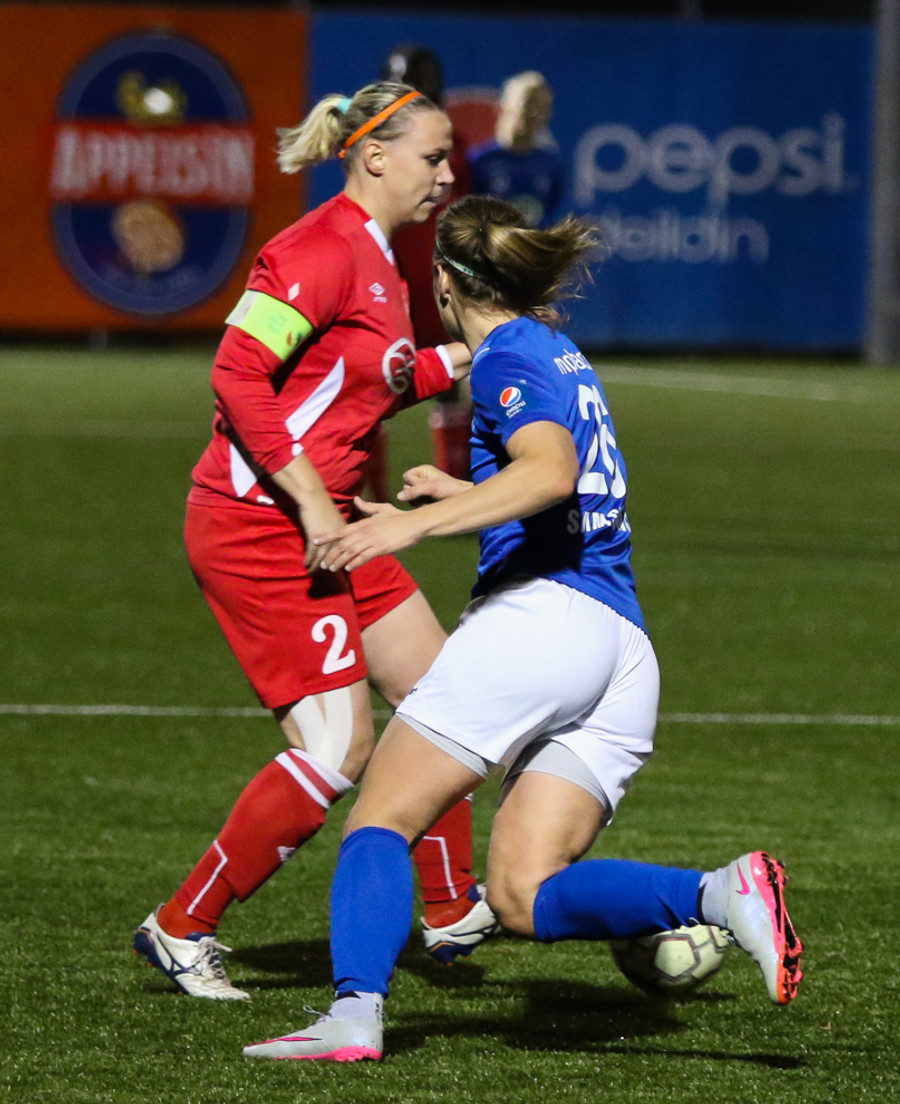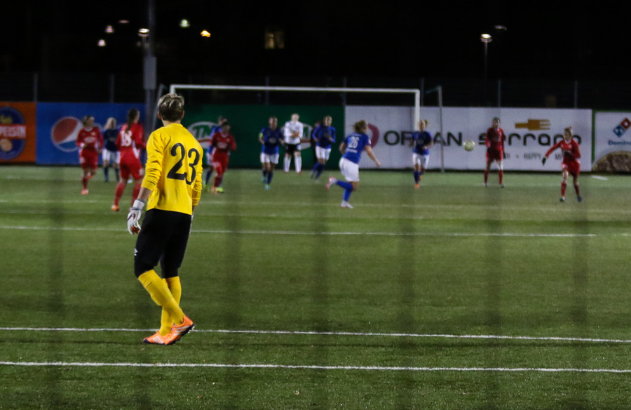 Rússanir byrja af miklum krafti og leikmaður 17, Daryna var nálægt því að koma sér í færi en Stjörnustúlkur náðu að koma boltanum í burtu.