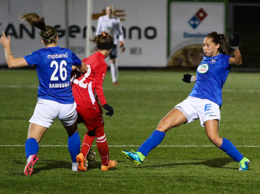 Olha Boychenko skoraði næstum stórkostlegt mark. Tók flotta hjólhestaspyrnu sem Sandra var ekki að fara að verja en sem betur fer var Ana Victoria á línunni og bjargaði.