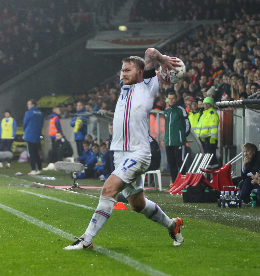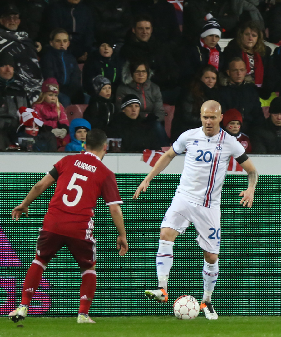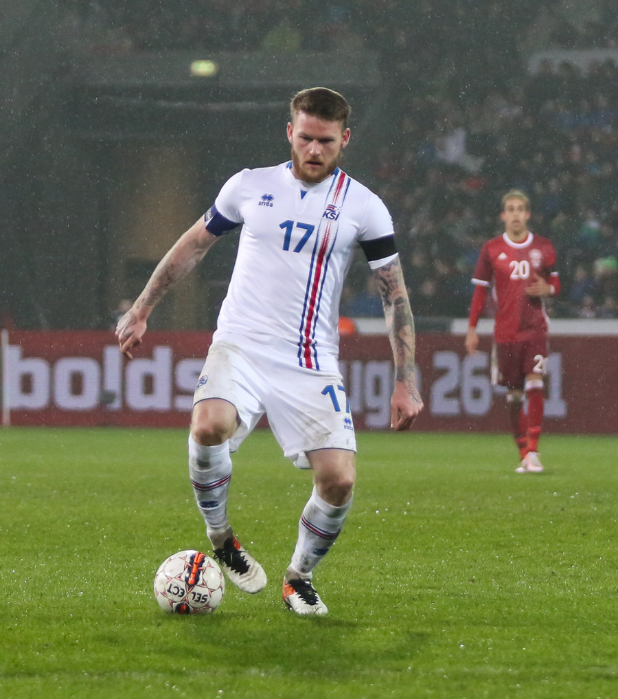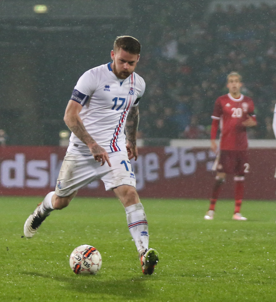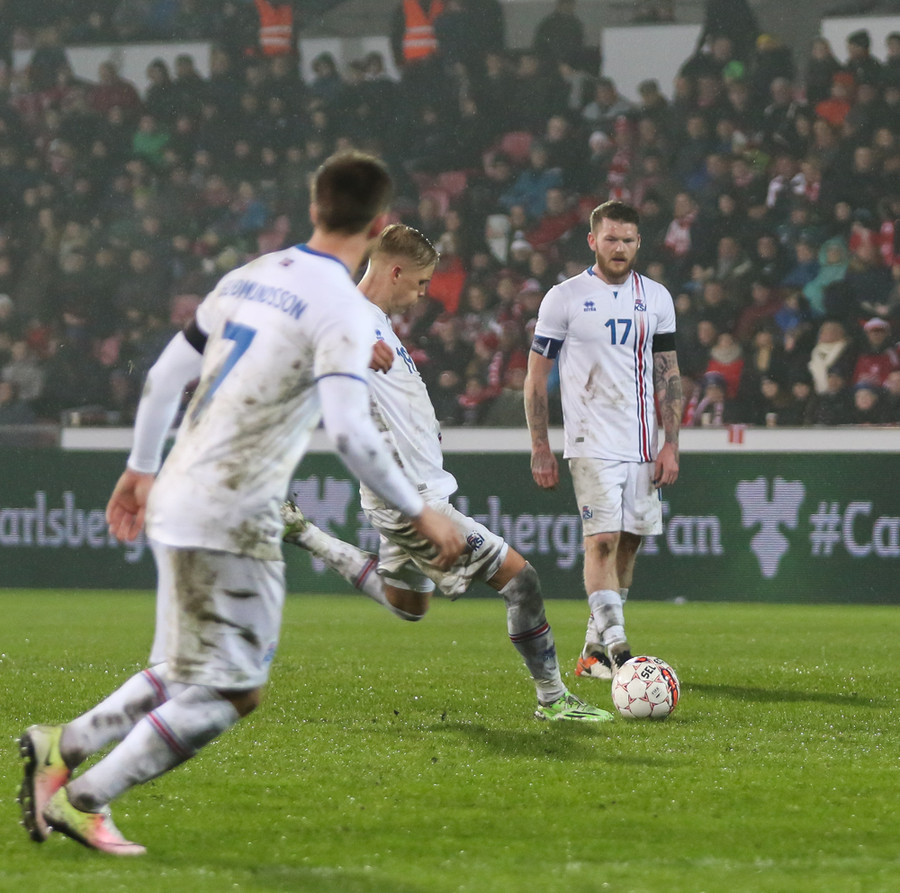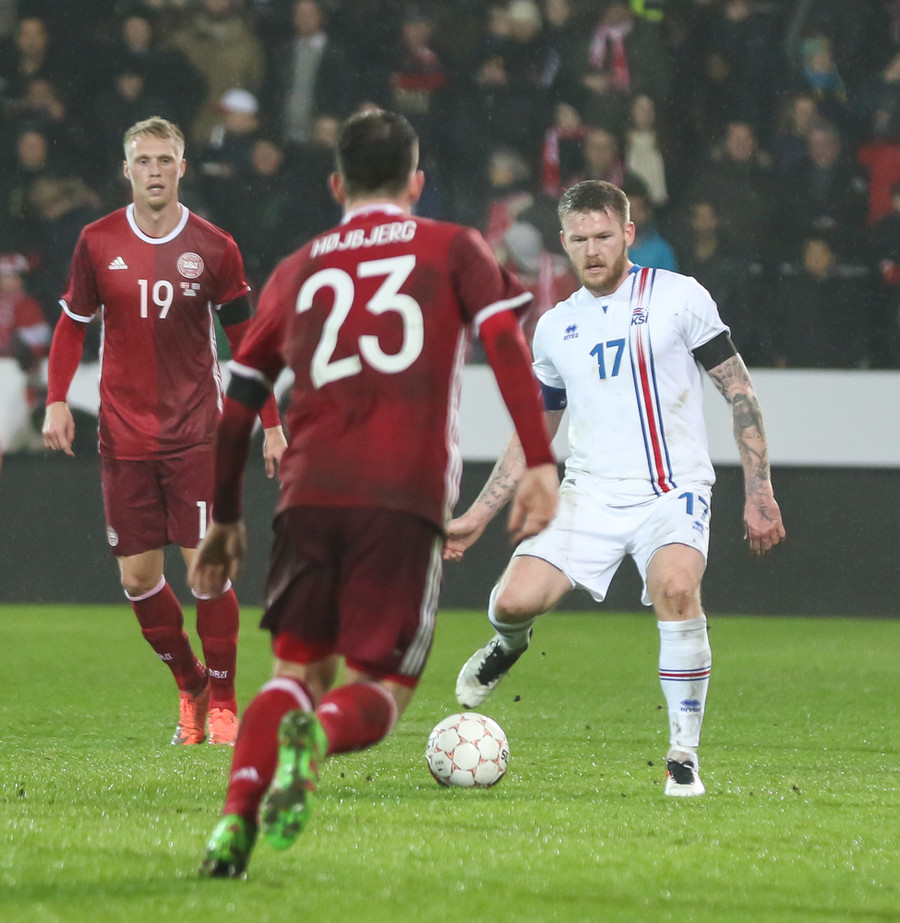 Þar voru Aron Einar Gunnarsson, Gylfi Þór Sigurðsson, Birkir Bjarnason, Jóhann Berg Guðmundsson og Kolbeinn Sigþórsson allir í byrjunarliði Íslands en þeir verða í eldlínunni í leiknum í Herning í kvöld.