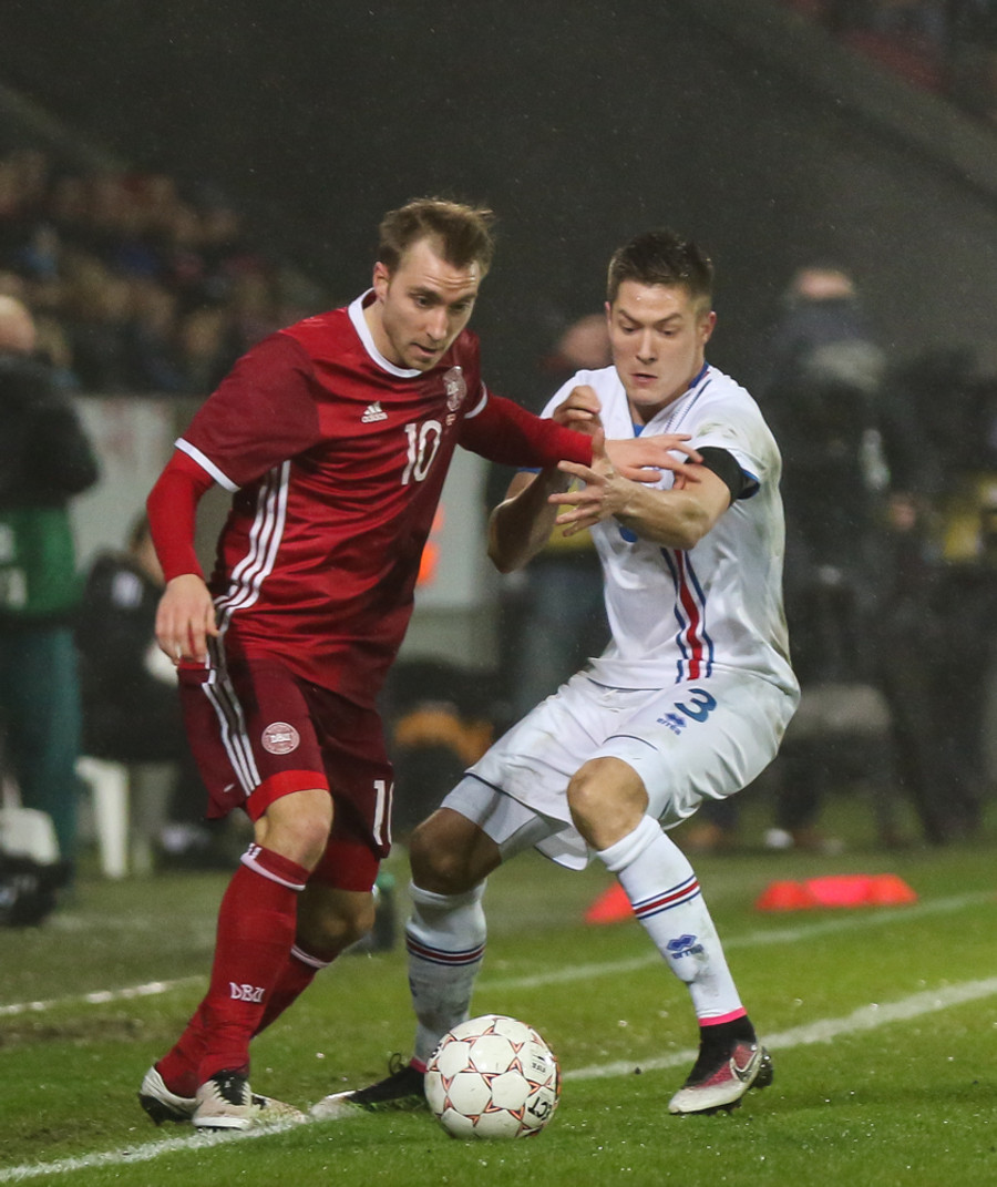 Christian Eriksen, leikmaður Tottenham, er á sínum stað en hann spilar fyrir aftan framherjana Yussuf Yuray og Nicolai Jörgensen.