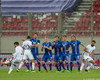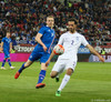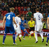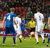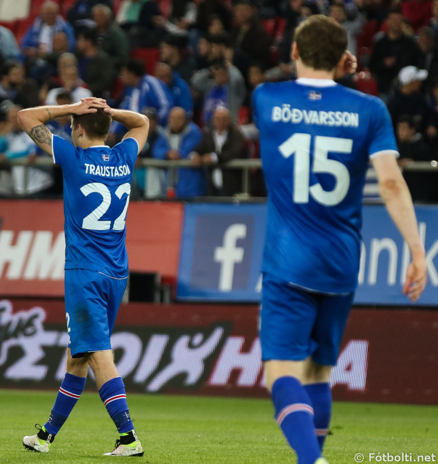 Þarna munaði millimetrum!! Ísland fær aukaspyrnu út á kanti eftir góða samvinnu Birkis og Jóa. Emil Hallfreðsson lætur vaða en boltinn fer í slána og út. Viðar Örn fær boltinn í hælinn og út í frákastinu, var kominn skrefi og nálægt markinu.