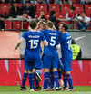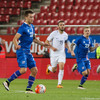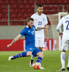 Dauðafæri!! Jóhann Berg á hörkuskot sem Stefanos ver, Alfreð nær frákastinu en hittir boltann illa. Skotið er því laust og Stefanos sparkar boltanum aftur fyrir endamörk.