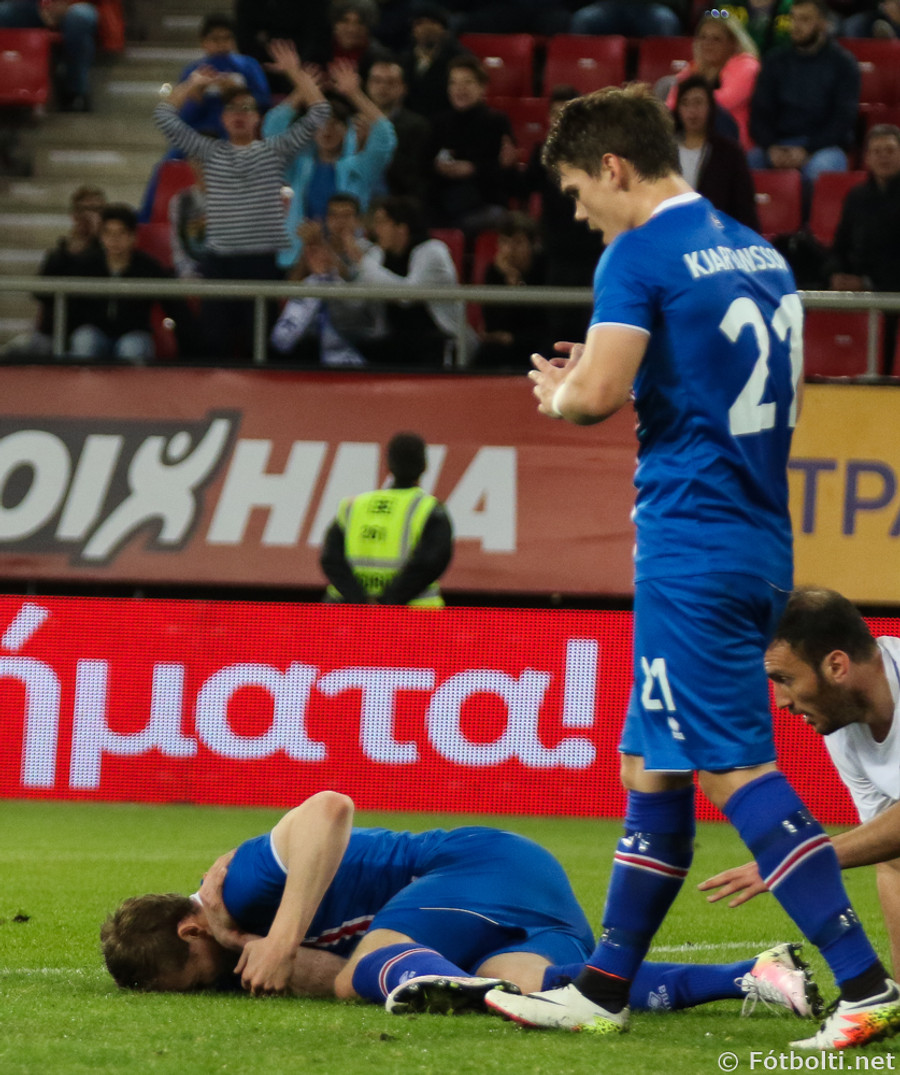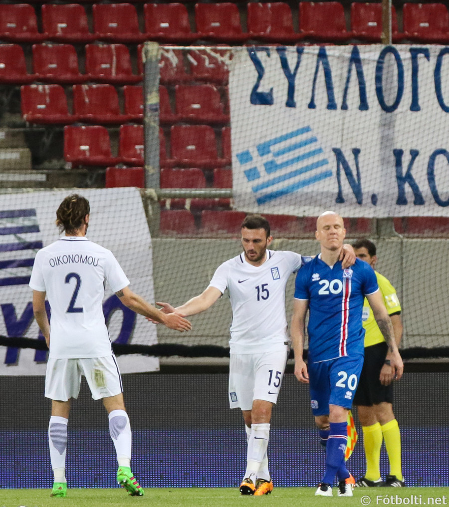 Grikkir komust yfir þegar Emil Hallfreðsson fékk dæmda á sig klaufalega vítaspyrnu. Kostas Fortounis bætti við marki þegar Sverrir Ingi Ingason átti misheppnaða hreinsun.
