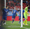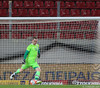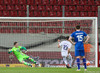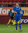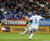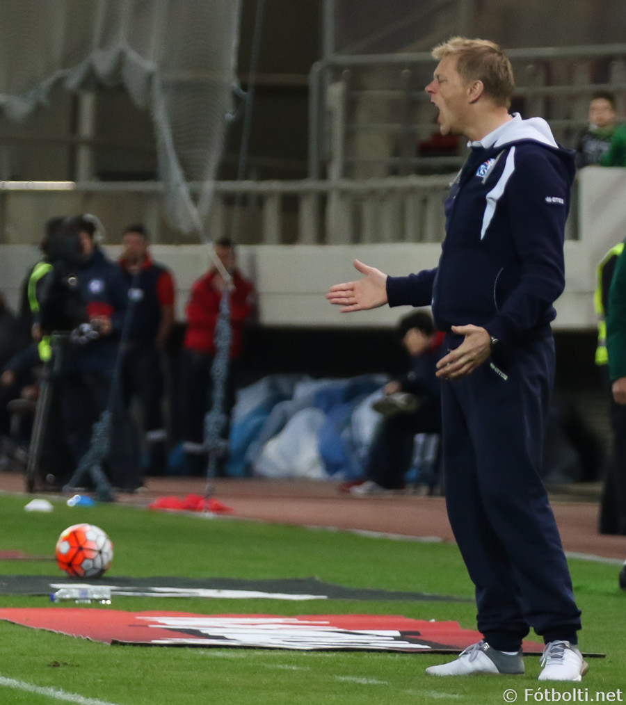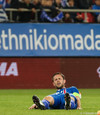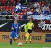 Apotolis Vellios, fyrrum leikmaður Everton, í færi en skot hans framahjá. Sem betur fer.