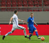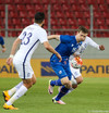 Ari með fyrirgjöf sem Dimitirs Siovas kemur aftur fyrir endamörk eftir baráttu við Jón Daða.