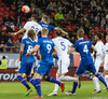 Þarna! Sverrir Ingi skorar sitt fyrsta landsliðsmark með glæsilegum skalla eftir aukaspyrnu frá Gylfa inn á teiginn.