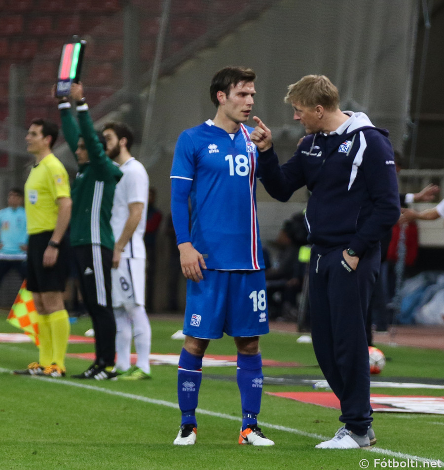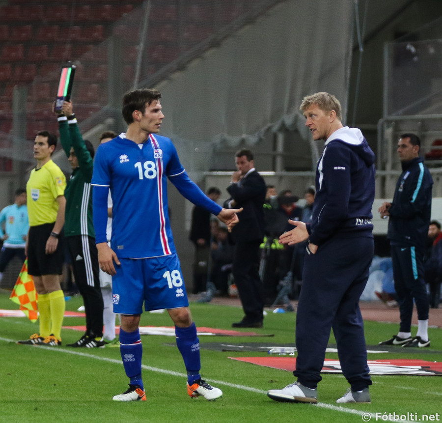 Birkir tekur stöðu Arons á miðjunni og Gylfi kemur inn fyrir Emil. Theodór Elmar á vinstri kantinn fyrir Arnór Ingva. Arnór var frábær í fyrri hálfleik og svo gott sem gulltryggði farseðilinn til Frakklands.